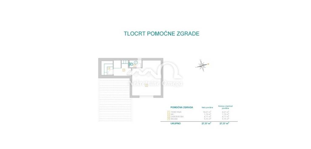 dodatnih prostorija za spremište, praonicu i garderobe
