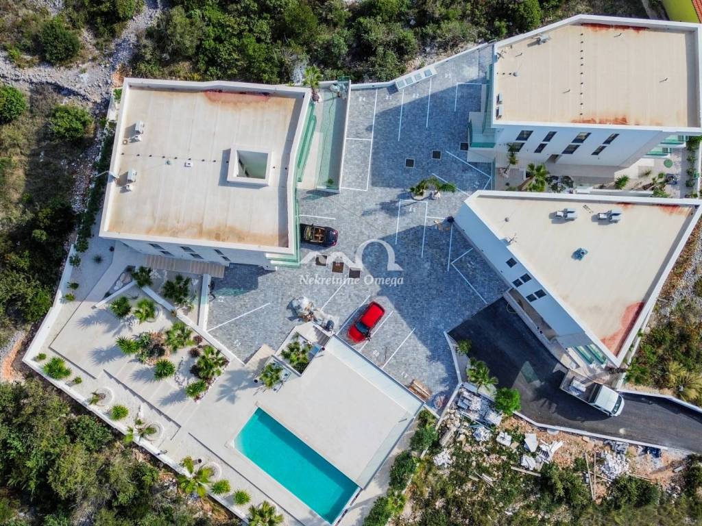 Kompleks se sastoji od tri luksuzne vile s ukupno 11 stanova. U cijenu svakog stana uključeno je suvlasništvo nad zemljištem površine 650 m², s uređenim vrtom, bazenom i zonom za roštilj – idealnim mjestom za opuštanje i uživanje uz predivan pogled na more.