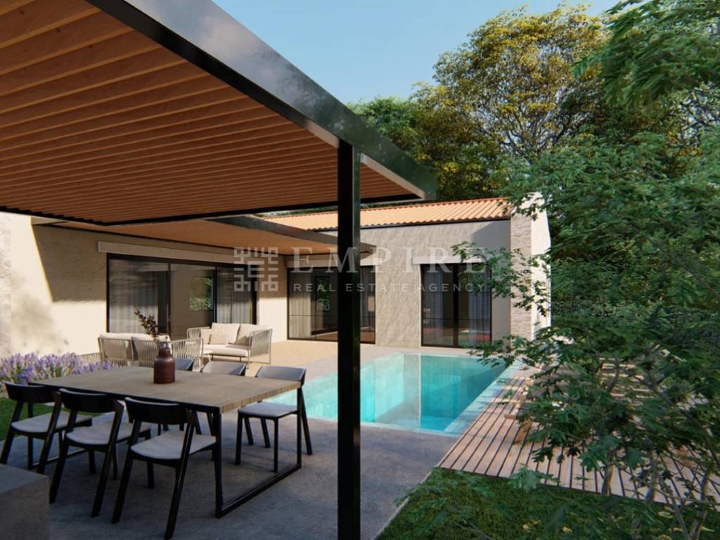 Vila je jednokatna kuća smještena na parceli od 750 m², s unutrašnjim prostorom od 150 m² i 95 m² vanjskog prostora za uživanje uključujući bazen, sunčalište, lounge zonu i vanjsku kuhinju.
