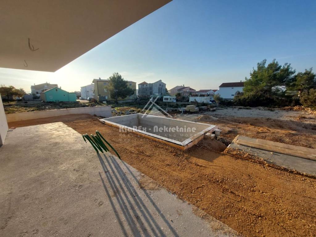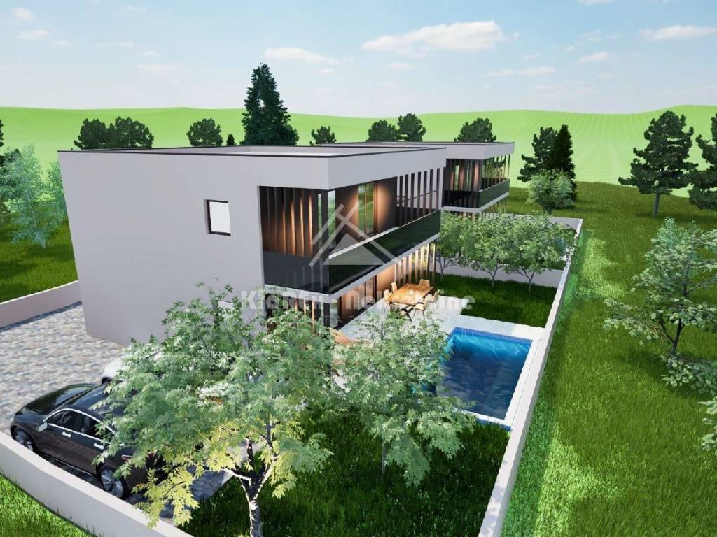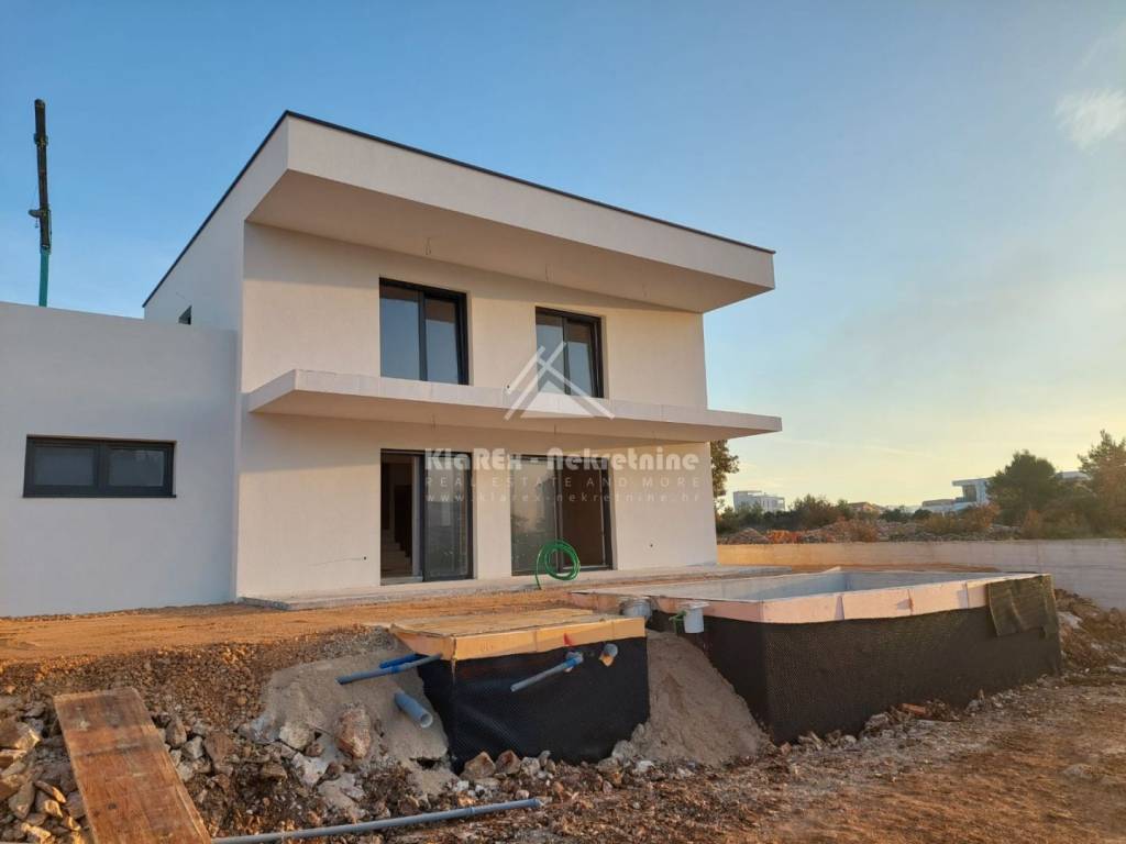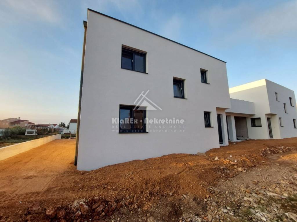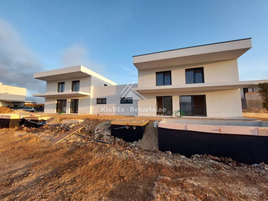 U Vodicama se stavljaju u prodaju dvije dvojne kuće s garažom i bazenom. Riječ je o novogradnji, udaljenoj oko 850 metara od mora, odnosno centra grada. Zgrada je u završnoj fazi gradnje i sada slijede radovi unutarnjeg i vanjskog uređenja kuće. Za ovaj dvojni objekt je izdana pravomoćna građevinska dozvola, a završetak projekta i useljenje se očekuju do proljeća 2026. U gradnji i uređenju se koriste materijali i oprema visoke kvalitete, a od svega vrijedi izdvojiti: podna grijanja u kuhinji i dnevnom boravku, električni podizači roleta, klima uređaji u dnevnom boravku i svim sobama itd. Pozicija nekretnine omogućuje pristup svim relevantnim sadržajima. Dinamika plaćanja u dogovoru s investitorom. U ponudi je: