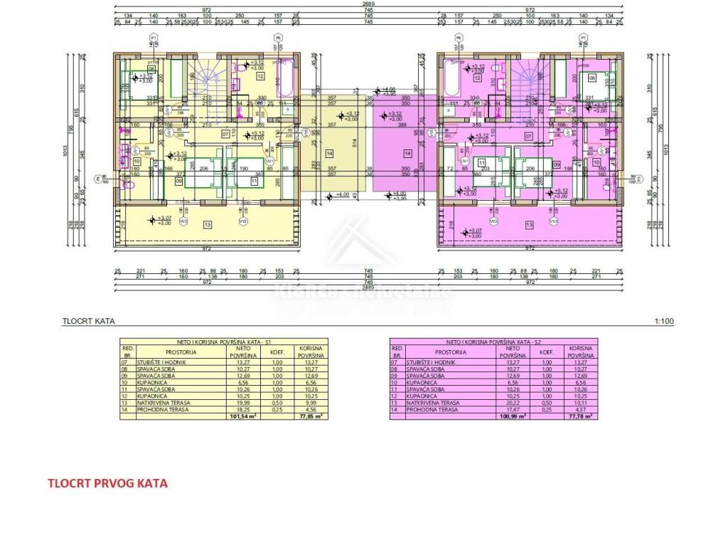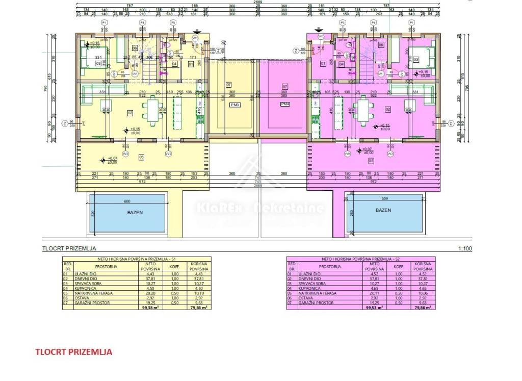Stambena jedinica S2- dvoetažna dvojna kuća neto površine 157.64 m/2. Sastoji se od prizemlja i kata, ukupno četiri spavaće sobe od kojih je jedna master spavaća soba s vlastitom kupaonicom. Kuća posjeduje vanjski bazen površine 18 m/2, garažu i okućnicu površine 200 m/2.