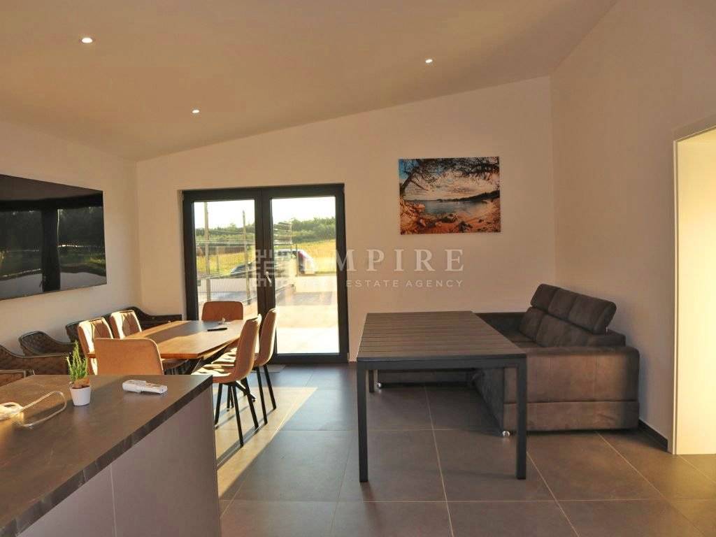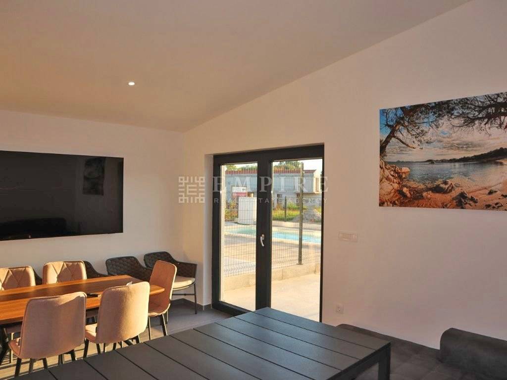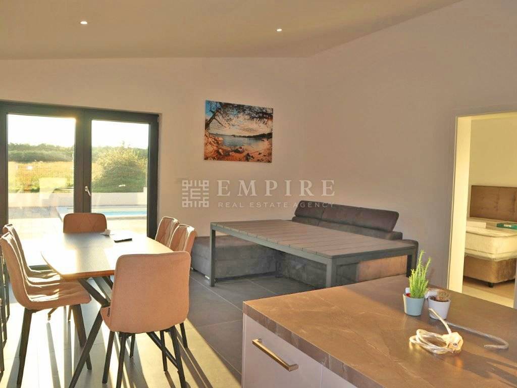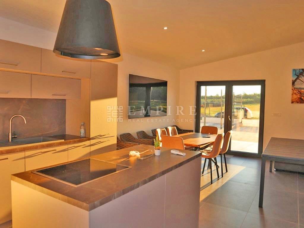 Zamislite svoj novi dom – mjesto gdje svaki dan počinje uz tišinu prirode, a završava uz pogled na blistavi bazen i sunčano terasu. Ova prelijepa prizemnica od 75 m² u okolici Poreča nudi savršen spoj funkcionalnosti i ugodnosti. S tri spavaće sobe i dvije kupaonice, svakom članu obitelji osiguravate privatnost i udobnost, dok otvoren koncept kuhinje i dnevnog boravka stvara toplu atmosferu za opuštanje i druženje. S izlazom na terasu i bazen od 21 m², svaki dan pretvarate u uživanje na sunčalištu, uz osjećaj svježine i relaksacije. Okućnica od 150 m², okružena zelenilom, pruža mir i privatnost, dok dva parkirna mjesta omogućuju laku dostupnost. Smještena u mirnom, zelenom kutku samo 5 km od mora, ova kuća je savršen odmak od gradske gužve, a istovremeno vrlo blizu ljepote Jadrana. Idealna za obitelj ili kao mjesto za odmor i opuštanje.