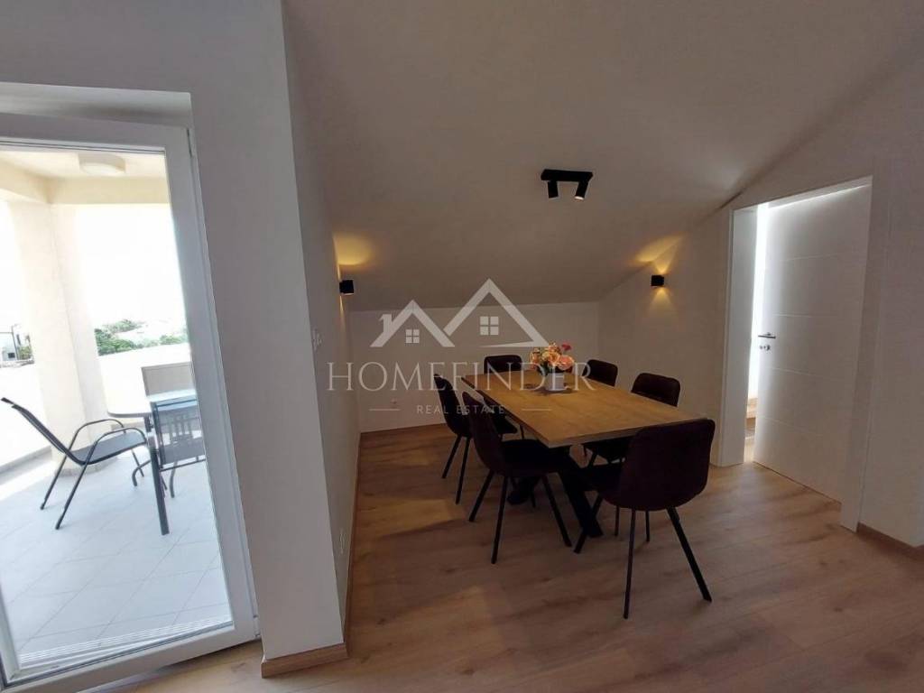 Posebnost ovog apartmana je njegova funkcionalna podjela – sastoji se od dvije potpuno odvojene stambene jedinice, svaka sa svojim ulazom, kuhinjom, kupaonicom i priključcima. Iako je u etažnom elaboratu evidentiran kao jedan stan, unutarnjom pregradom dobivene su dvije zasebne cjeline, što omogućuje različite mogućnosti korištenja – kao investiciju za turistički najam, zajednički boravak dviju obitelji ili povezanu, ali odvojenu stambenu jedinicu. Pregradni zid može se po potrebi ukloniti, čime se apartman može vratiti u prvobitno stanje kao jedna velika stambena jedinica.
