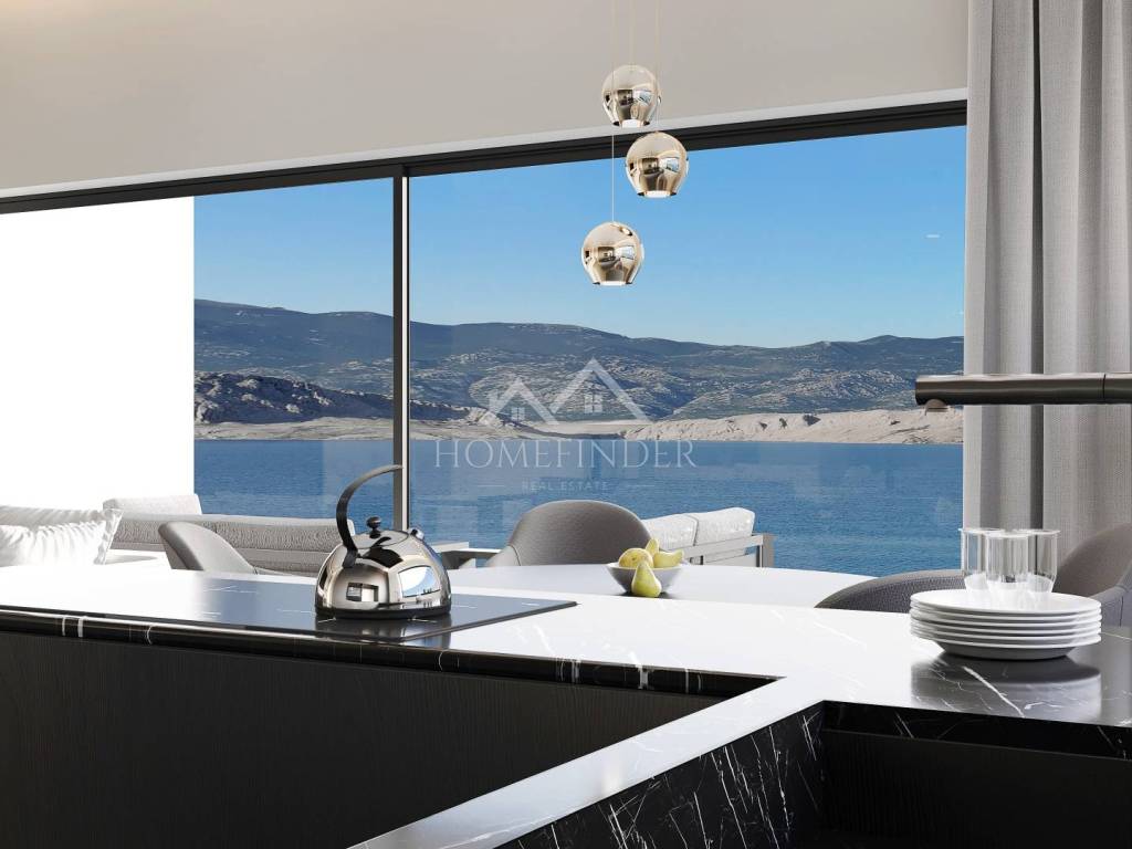 Na izuzetnoj lokaciji na otoku Pagu, na vrhu litice s otvorenim pogledom na more i planinu Velebit, prodaju se dva stana u prizemlju moderne vile s ukupno četiri stambene jedinice. Prednost ovih prizemnih stanova je direktan izlaz na prostranu terasu koja vodi do zajedničkog grijanog bazenom i pomno uređene zelene oaze – savršene za uživanje u mediteranskom ambijentu.