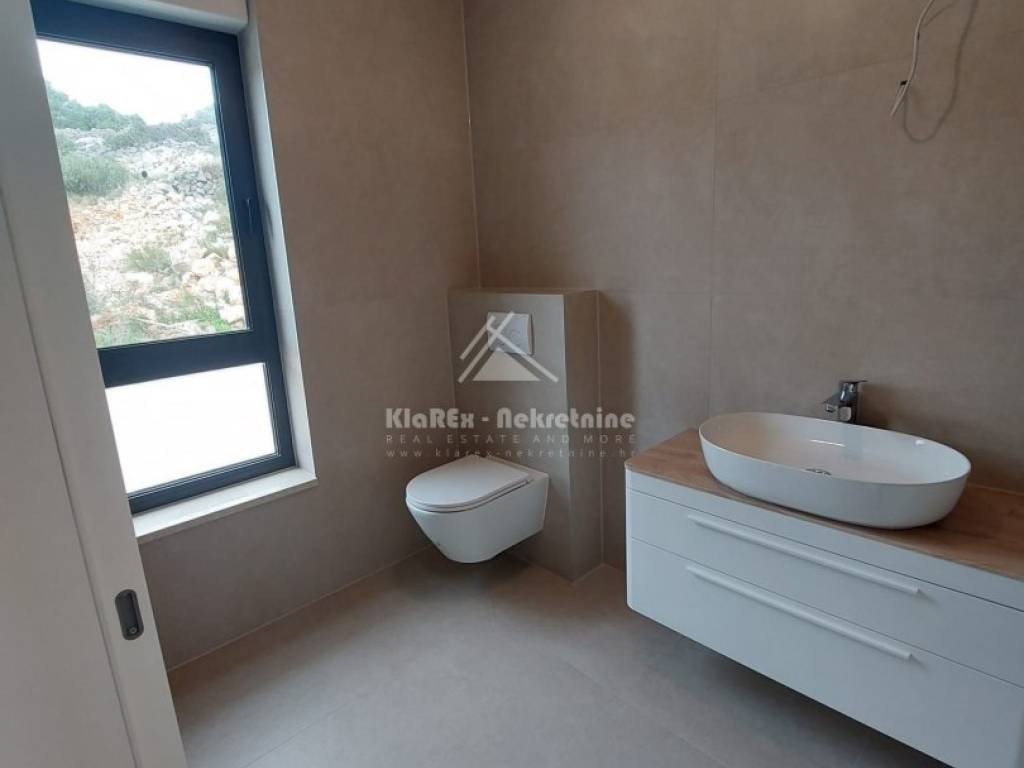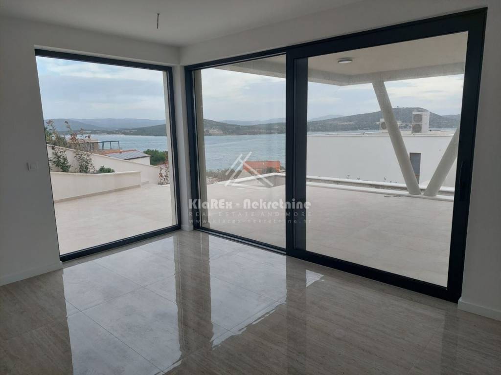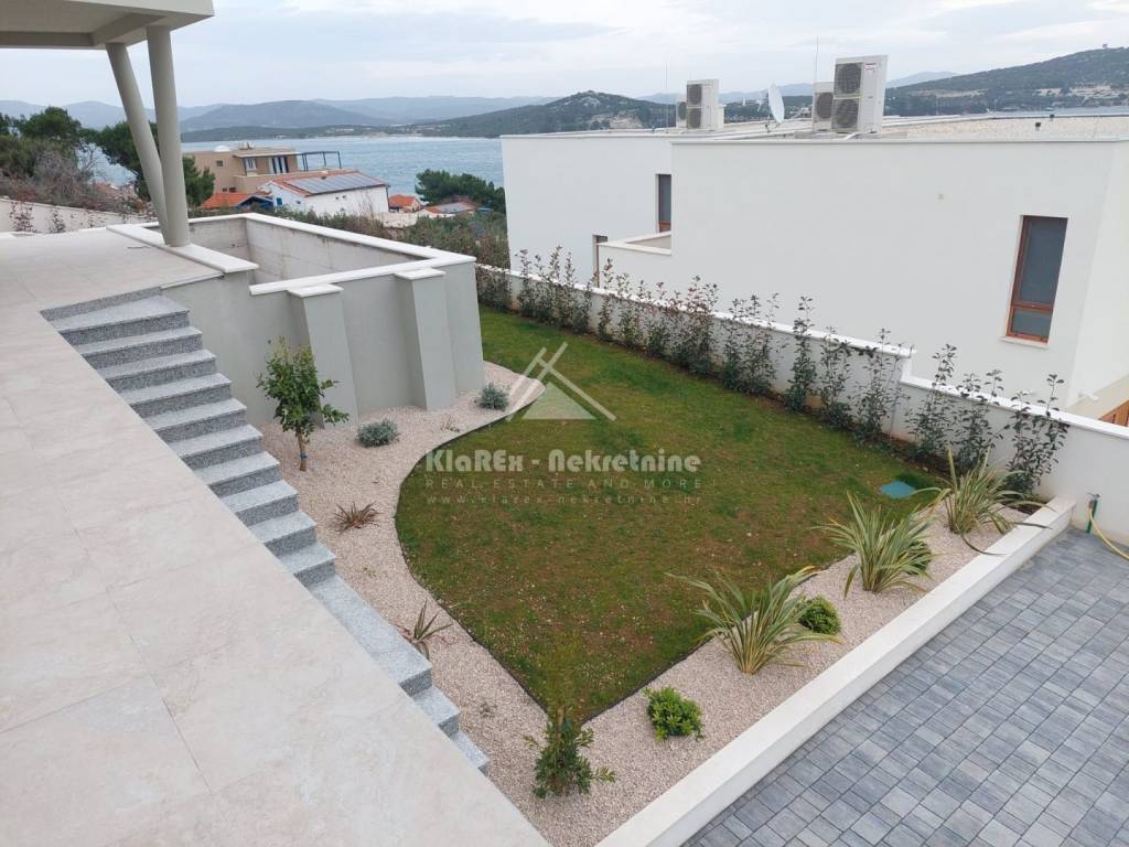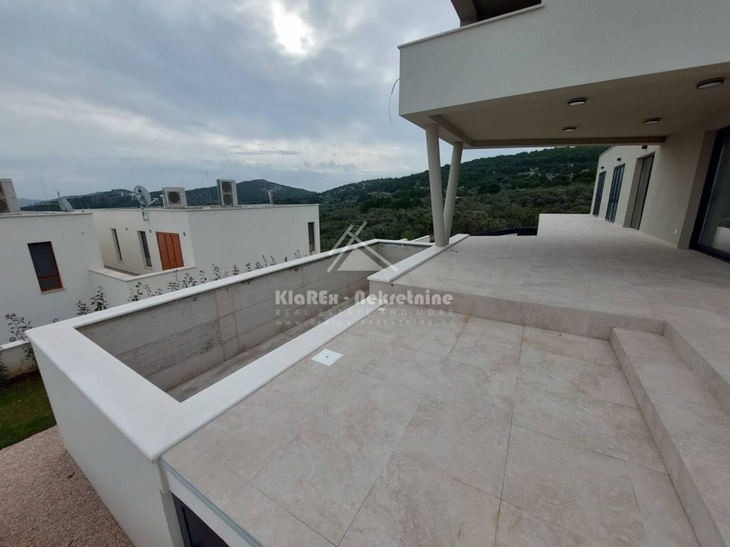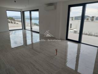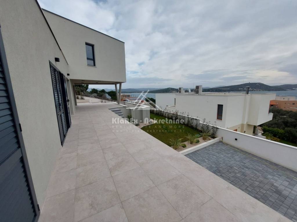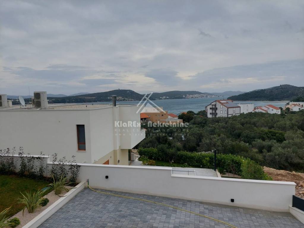 U Betini, na otoku Murteru (otok je s kopnom spojen pokretnim mostom, tako da nema ovisnosti o trajektnim linijama) se prodaje luksuzna samostojeća kuća na savršenoj lokaciji, smještena samo 170 metara od gradske plaže. Izvrstan spoj moderne gradnje i prostora u blizini svih relevantnih sadržaja. Kuća je skoro u potpunosti završena, izgrađena najnovijim materijalima i po najnovijim standardima gradnje, modernog je izgleda, te ima panoramski pogled na more. Vlasništvo i dokumentacija uredni. Kuća posjeduje bruto stambenu površinu od čak 258.83 m/2, a sastoji se od suterena s garažom, praonicom i spremištem. Visoko prizemlje do kojeg vode unutarnje stepenice se sastoji od pretprostora s hodnikom, dvije spavaće sobe, kupaonice, WC-a, manjeg spremišta i velikog dnevnog boravka iz kojeg se pruža prekrasan pogled na more i okolinu. Iz dnevnog boravka se izlazi na veliku terasu s koje se pruža panoramski pogled na more i Betinu. Unutarnjim stepenicama se dolazi do prvog kata kuće na kojem se nalaze hodnik, dvije spavaće sobe od kojih je jedna master spavaća soba s vlastitom kupaonicom i garderobom dok je druga spavaća soba nešto manja, ali također posjeduje vlastitu kupaonicu. Iz svake od soba na prvom katu se izlazi na terasu s koje se također pruža pogled koji oduzima dah. Kući pripadaju bazen površine 28 m/2 s pripadajućom strojarnicom i okućnica ukupne površine od čak 438 m/2. Kuća je opremljena parlafonom, podnim grijanjem, IT sustavom sa WIFI upravljanjem, a sve prostorije u kući su u potpunosti klimatizirane. Sve dodatne informacije dostupne u agenciji.