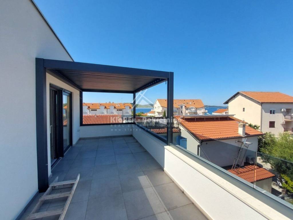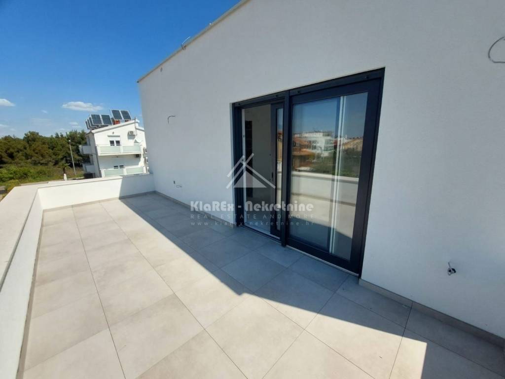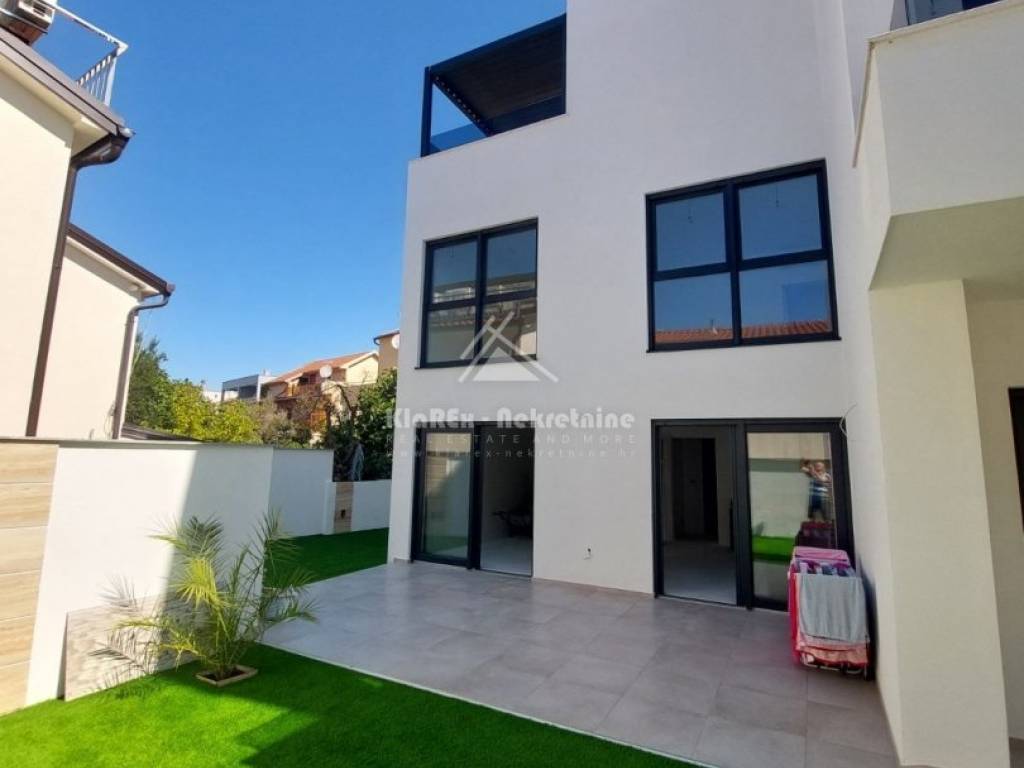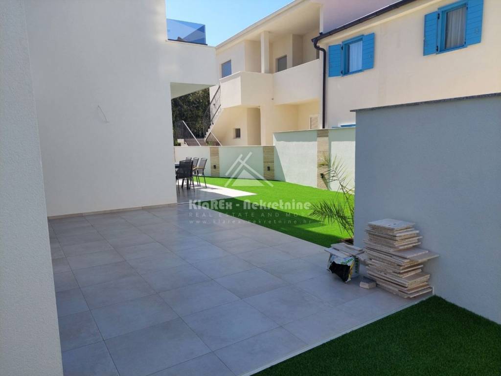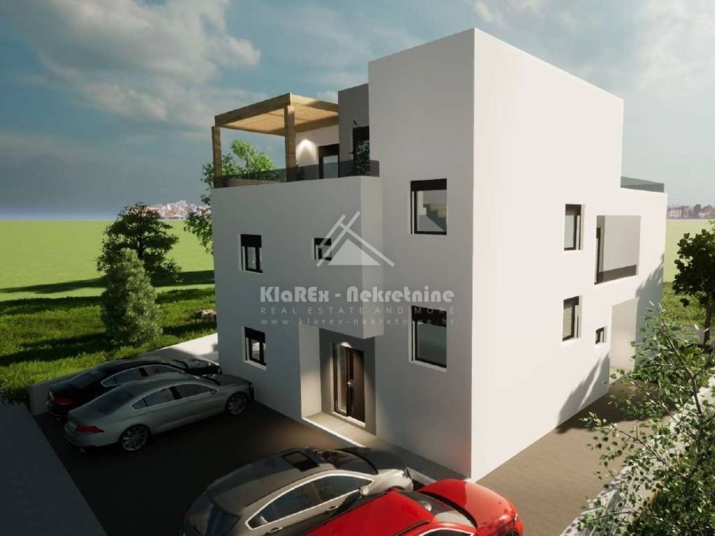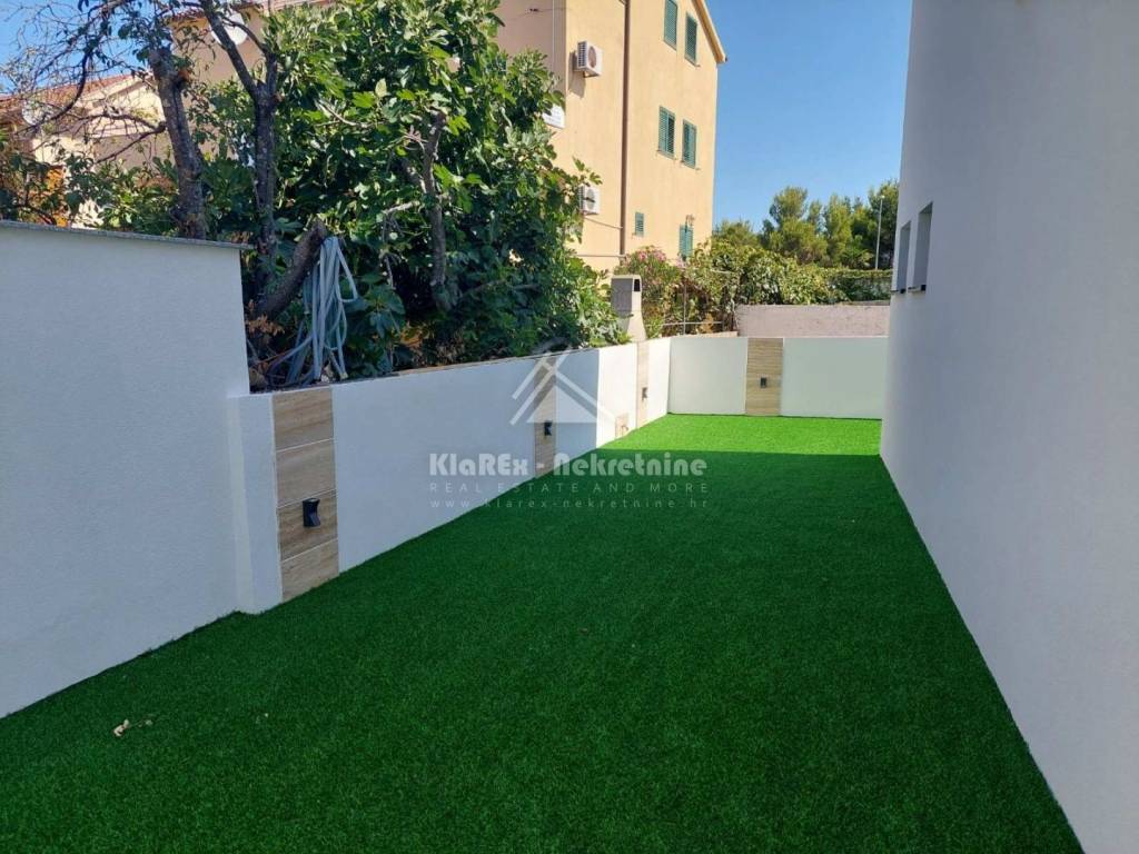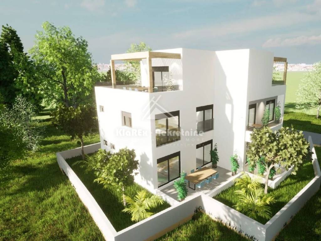 U Srimi, na udaljenosti od oko 300 metara od mora se stavlja u prodaju dvojna kuća s dvije stambene jedinice. Svaka stambena jedinica se sastoji od tri etaže na kojima su smještene: tri spavaće sobe, dnevni boravak s pripadajućom kuhinjom i blagovaonicom, kupaonice, a na drugom katu svake stambene jedinice je smještena master spavaća soba s vlastitom kupaonicom i terasom s pogledom na more. Svakoj stambenoj jedinici pripadaju vrt i po dva parkirna mjesta. U ponudi je stambena jedinica: