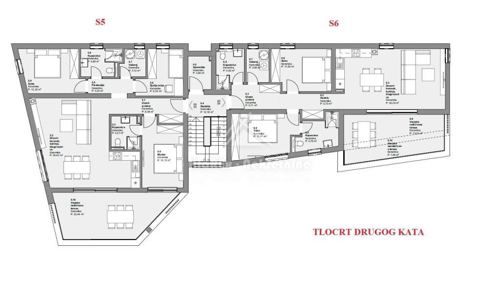 Stan oznake S6 koji se nalazi na drugom katu istočnog dijela stambene zgrade. Posjeduje podnu površinu od 80.33 m/2, a sastoji se od: ulaznog pretprostora, dnevnog boravka s pripadajućom kuhinjom i blagovaonicom iz kojih se izlazi na vanjsku natkrivenu terasu površine 20.57 m/2 s koje se pruža pogled na more i okolinu. Nadalje, stan posjeduje dvije spavaće sobe od kojih je jedna master spavaća soba s vlastitom kupaonicom, jedna zajednička kupaonica i praonica. Stanu pripada jedno parkirno mjesto u dvorištu zgrade podne površine 12.50 m/2.