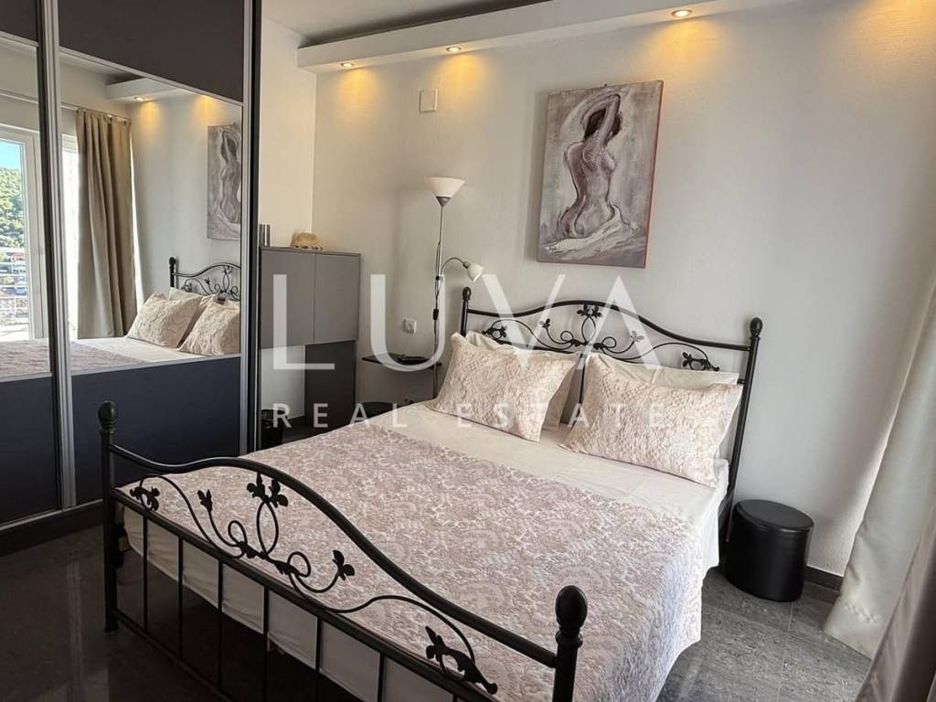 Vanjski dio kuće obogaćen je bazenom s kojeg se pruža impresivan panoramski pogled na more, savršen za opuštanje tijekom toplih ljetnih dana. Prostrana okućnica nudi brojne mogućnosti uređenja dodatnih sadržaja, dok osigurana parkirna mjesta za četiri automobila dodatno povećavaju praktičnost nekretnine.