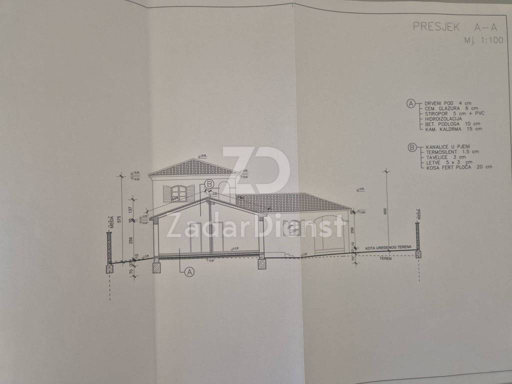 Na terenu je predviđena gradnja stambenog objekta za koji je ishođena Građevinska dozvola odnosno Rješenje o uvjetima građenja. Prijavljen je već početak radova tako da se može odmah pristupiti gradnji objekta. Predviđeni objekt , stambena kuća je bruto tlocrtne površine 164 m2 dok je ukupna bruto izgrađenost 220 m2. U prizemlju je predviđeno dvije spavaće sobe, dva kupatila, WC, dnevni boravak , kuhinja s blagovaonicom, dok na katu površine 56 m2 predviđeno je dvije spavaće sobe, sa kupatilima, stubište i lođa. Idealna obiteljska kuća s mogućnošću iznajmljivanja odvojenih soba s kupatilima. Predio je miran , tih, još ne izgrađen, gdje vam zrikavci sviraju ljetnu melodiju a ptice bude iz zimskog sna.