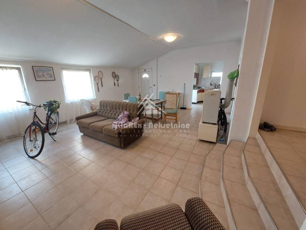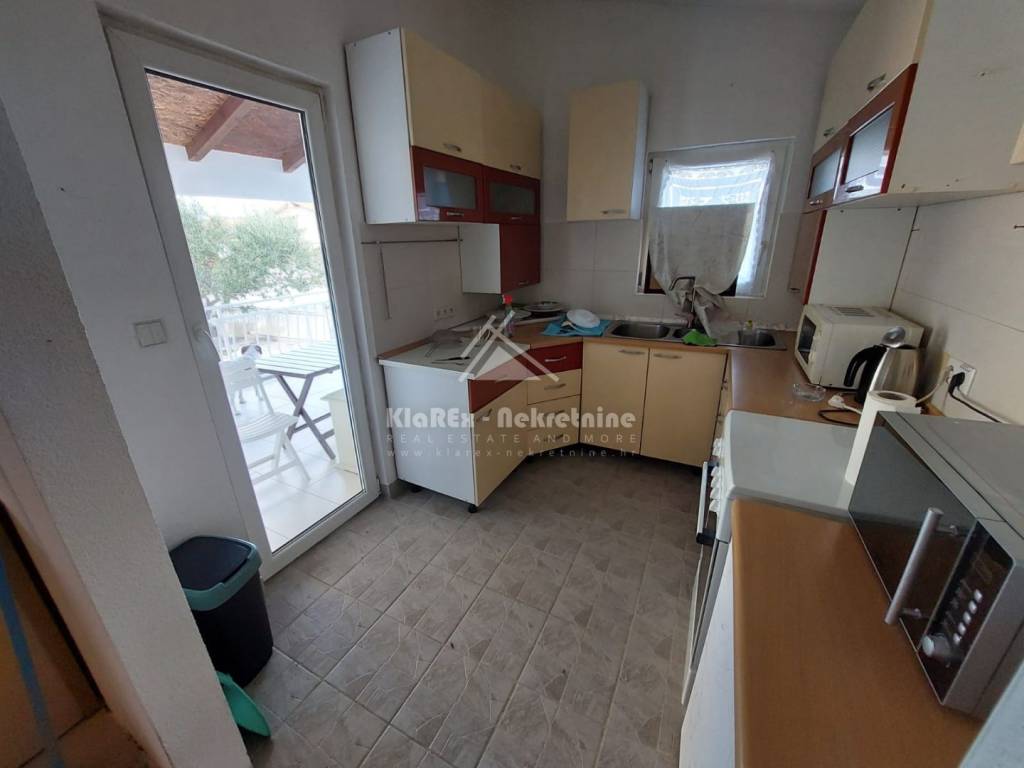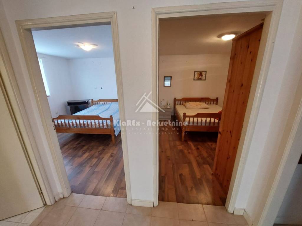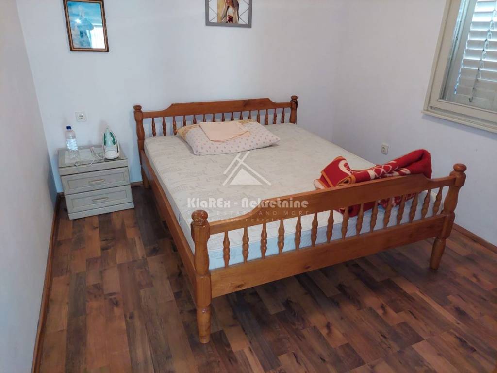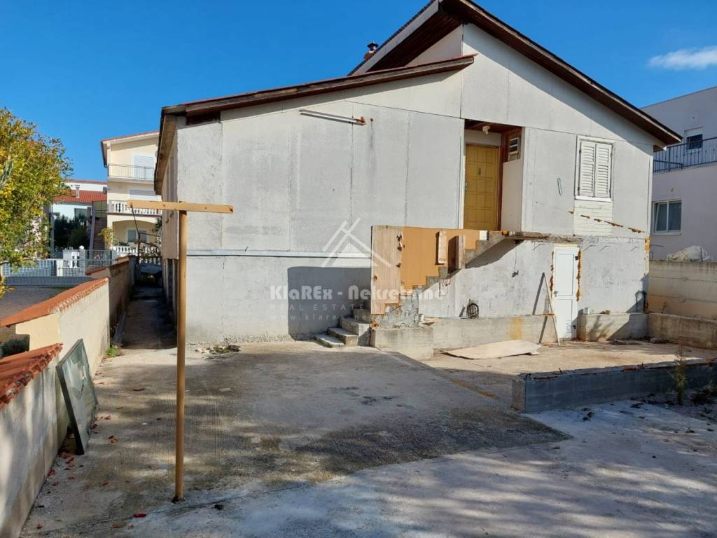 U Vodicama se stavlja u prodaju samostojeća kuća, katnica na mirnoj lokaciji, udaljena oko 1100 metara od uređene plaže, odnosno na oko 1300 metara od centra turističkih Vodica. Kuća se sastoji od dvije etaže, ukupne neto površine 135.34 m/2 i to od podruma/suterena u kojem se nalazi djelomićno uređeni studio apartman dok vanjske stepenice vode do visokog prizemlja, kata kuće u kojem je smješten dvosobni stan s terasom koji obuhvaća prostrani dnevni boravak s blagovaonicom, kuhinju, te dvije spavaće sobe i kupaonicu koje su smještene na lagano povišenoj razini. Kuća posjeduje veliko dvorište, površine 210 m/2 dijelom sa zasađenom mediteranskom kulturom, a površina dvorišta omogućuje parkiranje minimalno dva automobila. Kuća je useljiva, ali ipak zahtjeva određena ulaganja. Vlasništvo čisto, dokumentacija uredna uključujući uporabnu dozvolu.