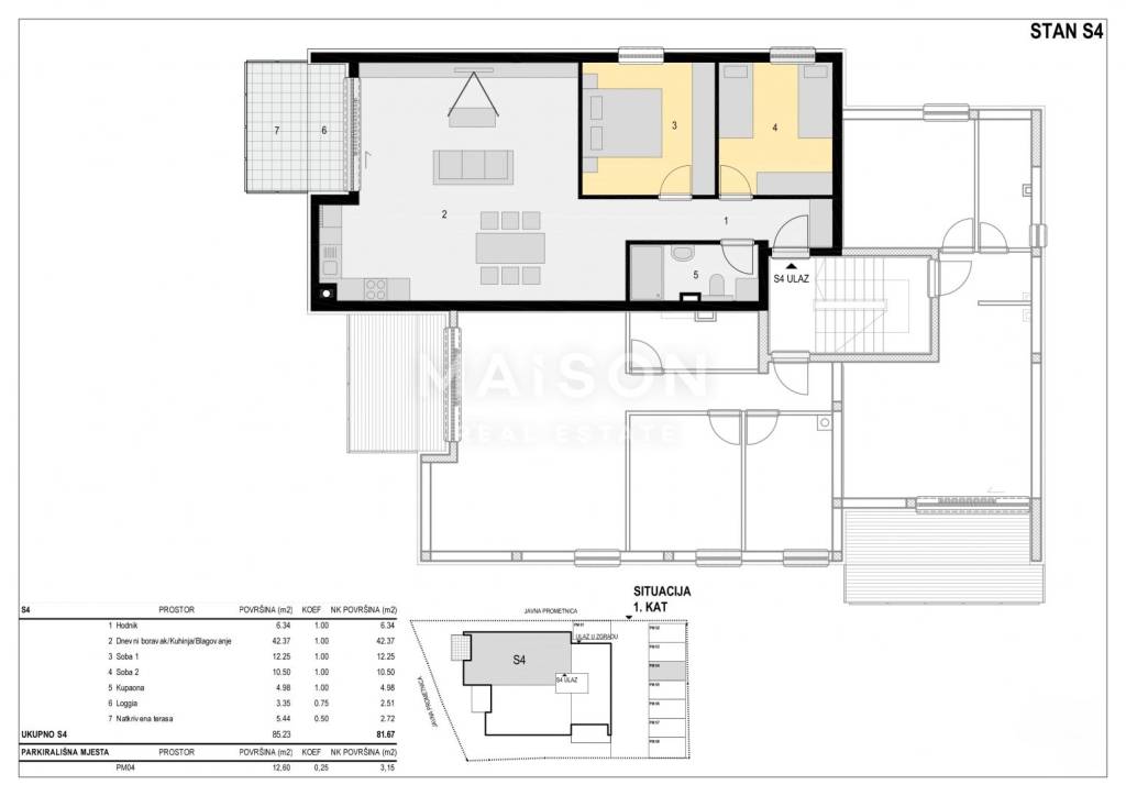 Na prodaju luksuzan stan S4 smješten na prvom katu ekskluzivne novogradnje, ukupne površine 81,67 m².