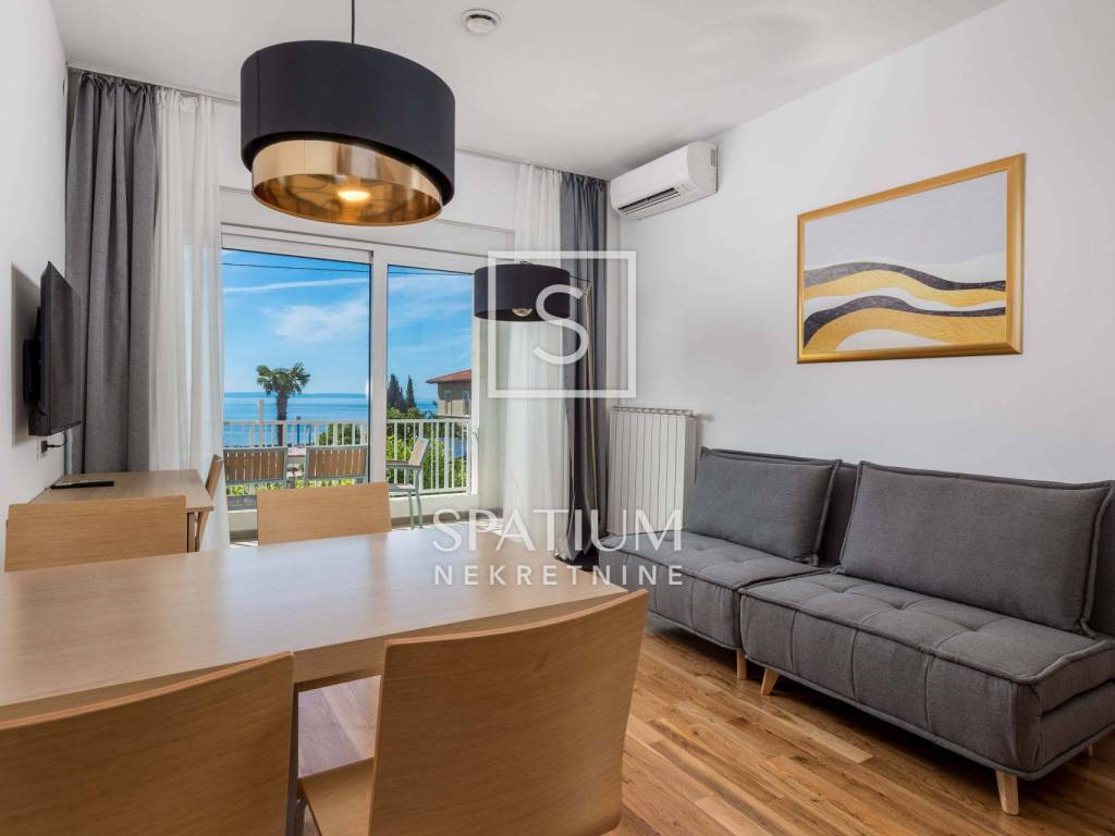 IČIĆI, u ponudi je jednosoban apartman blizu mora s osiguranim vanjskim parkirnim mjestom za dugoročni najam. Apartman je u potpunosti opremljen i namješten za ugodan cjelogodišnji boravak na obali. Objekt ima sustav grijanja i ventilacije putem dizalice topline. Apartman ima jednu spavaću sobu, kupaonicu i glavnu stambenu prostoriju koja dijeli funkciju kuhinje, blagovaonice i dnevnog boravka iz kojeg je izlaz na osunčanu lođu s koje se pruža predivan pogled na more. Uz ugovoreni iznos najamnine, najmoprimac plaća dodatno mjesečne režije u fiksnom iznosu od 200€. Apartmanu pripada jedno vanjsko parkirno mjesto. Objekt ima dizalo. Na okućnici je smješten bazen sa sunčalištem koji je dostupan za korištenje. Apartman je u razini visokog prizemlja. Nalazi se na pješačkoj udaljenosti do mora, marine i centra Ičića. Apartman je slobodan od drugog tjedna prosinca.