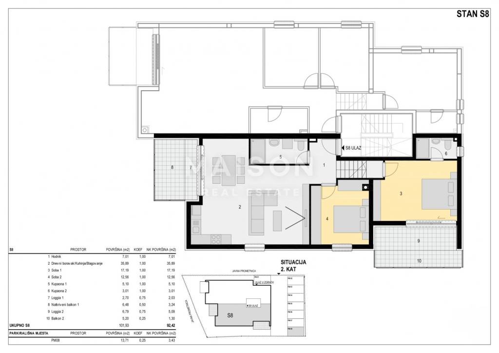 Na prodaju luksuzan stan S8 smješten na drugom katu ekskluzivnog projekta novogradnje, ukupne površine 104,35 m².
