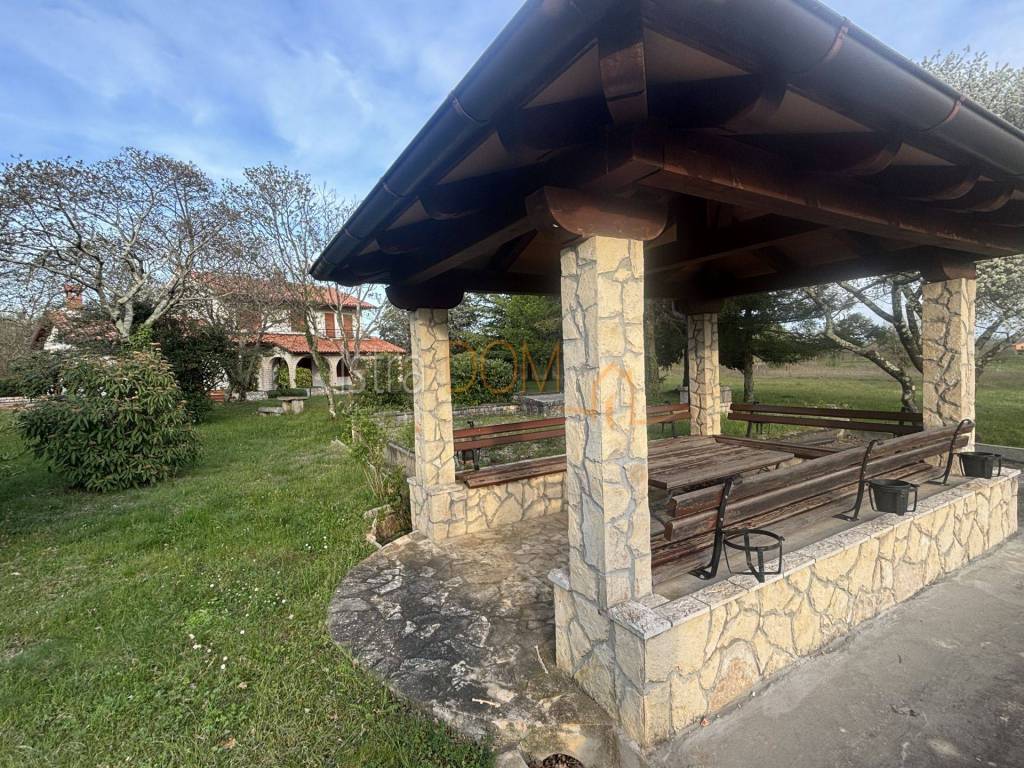 Na okućnici se nalazi mala kućica s roštiljem, savršena za uživanje u vanjskim druženjima, te konoba koja nudi dodatni prostor za skladištenje ili uživanje u vinu. Ispod sjenice smjestio se vinski podrum, idealan za ljubitelje vina i savršen za uživanje u opuštenim trenucima s obitelji ili prijateljima. Uz sve to, imanje posjeduje i garažu, koja dodatno povećava praktičnost i sigurnost.