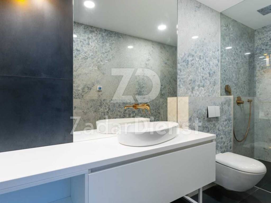 Stan je kompletno namješten i posjeduje svoj privatni lift koji vodi iz garaže do stana. Instalirano je podno grijanje, ugrađeni su aluminijsk prozori s stroslojnim staklom, električnim roletama i komarnicima. Ulazna vrata su protuprovalna i protupožarna.