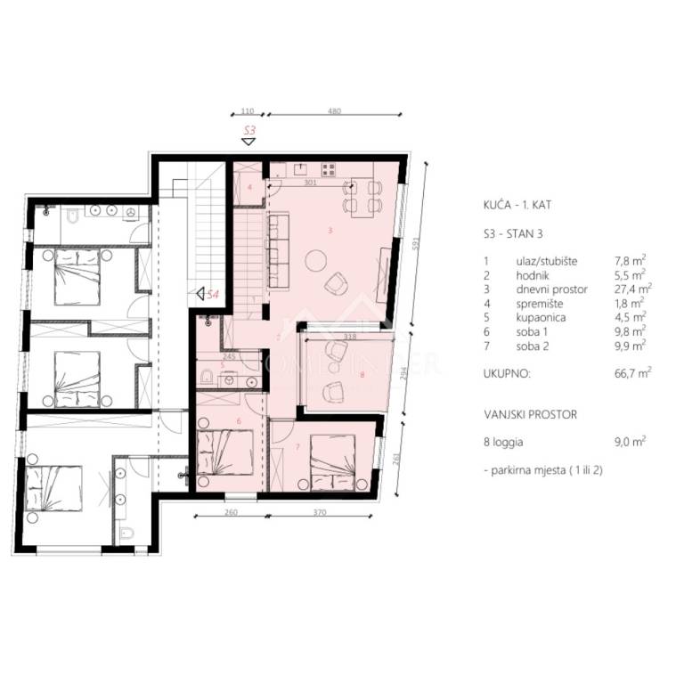 Novogradnja – 73 m² – 2 spavaće sobe – 1 parkirno mjesto – useljenje 06/2026