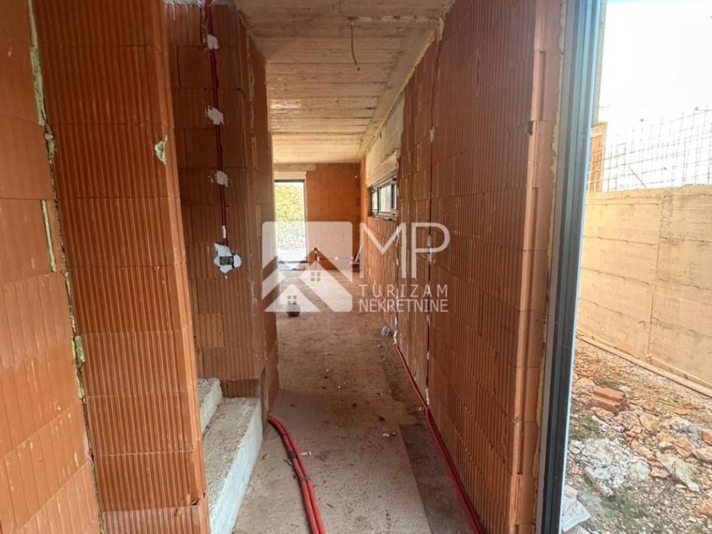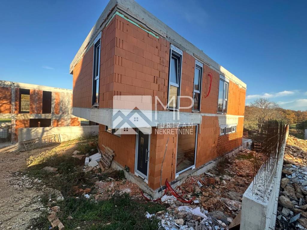 VALTURA, manje naselje u sastavu općine Ližnjan, udaljeno 6 km od Pule. Na mirnoj lokaciji, udaljeno od gužve i gradske vreve, prodajemo obiteljsku kuću oznake „C“ smještenu na parceli od 500m2. Riječ je o samostojećoj kući koja se prostire na dvije etaže – prizemlje i kat neto površine 165,14 m2 m2. U prizemlju je predviđen hodnik+garderoba, kupaonica, dnevni boravak + kuhinja + blagovaonica, natkrivena terasa i spremište (74,66m2). Na prvom katu je predviđen hodnik + stubište, tri spavaće sobe sa kupaonicama, od kojih jedna ima dodatno garderobu, a sve imaju direktan izlaz na natkrivenu terasu (90,48m2). Ispred kuće je predviđeno jedno parkirno mjesto. Osim mirne lokacije, zemljište se nalazi na rubu građevinske zone te se ispred ne može ništa graditi. Oglašena cijena od 290.000 € odnosi se na kuću u trenutnoj fazi – završen roh bau, ugrađena stolarija, napravljene pregrade i izbetoniran bazen. Moguć je dogovor oko završetka kuće.