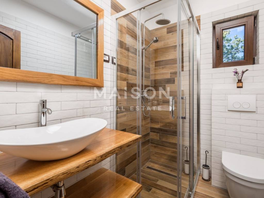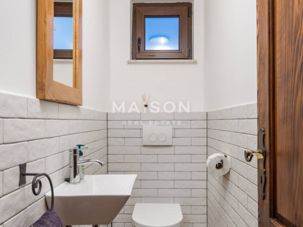 Već pri ulasku u dvorište, jasno je da je riječ o domu u kojem se ništa nije prepušteno slučaju – od zidane pećare i automatske vanjske rasvjete, do njegovane okućnice s vinogradom i planiranim voćnjakom. Vila je okružena zelenilom koje se mijenja s godišnjim dobima, a privatnost je zagarantirana.