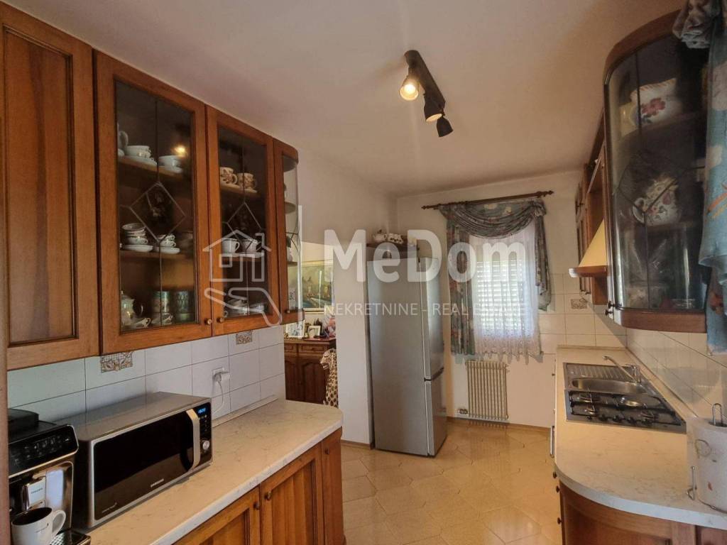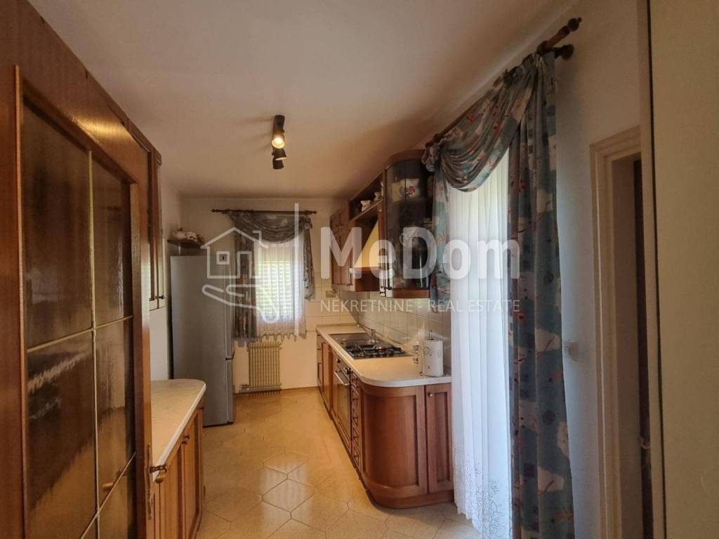 Prodajemo prekrasnu kuća u centralnoj Istri, općina Pazin, stambene površine 200m2. Ukupna površina zemljišta na kojoj se nalazi kuća je 3515m2 a od toga je građevinsko zemljište površine 1671m1. Kuća se nalazi na moderno uređenoj okućnici, okružena travnjacima, ukrasnim biljem, drvećem, mediteranskim raslinjem i povrtnjakom. Kompletno zemljište ograđeno je kamenim zidom, žičanom ogradom i uređenom zelenom živicom čime se osigurava visok stupanj privatnosti. U blizini kuće nalazi se i poznato kupalište sa atraktivnim slapom. Kuća u prizemlju ima garažu, opremu za centralno grijanje i jednu stambenu jedinicu od 50m2 koja je u visokoj fazi renoviranja. Na prvom katu kuće nalaze se dva hodnika, kuhinja, dnevni boravak sa blagovaonom, tri spavaće sobe, toalet, kupaonica i ostava. Iz dnevnog boravka se izlazi na terasu sa koje se pruža fantastičan pogled na lijepo uređenu okućnicu i daljnju okolinu. Nedavno je na kući postavljena vanjska PVC stolarija i ALU grilje, napravljena je kvalitetna nova termo fasada i novi krov. Kuća ima centralno grijanje i video nadzor. Travnjak ima automatsko zalijevanje. Uz kuću se nalazi i bunar pitke vode veličine 40m3. Kupac dobiva i gotov projekat sa dozvolom za pomoćnu zgradu površine od 32m2. Kuća se prodaje namještena. Do centra Pazina dovoljno je 5 minuta lagane vožnje. Do autoceste treba nekoliko minuta vožnje. Prilika za ljubitelje mira i prirode nedaleko od urbanog središta Istre. Za sva pitanja na raspolaganju.