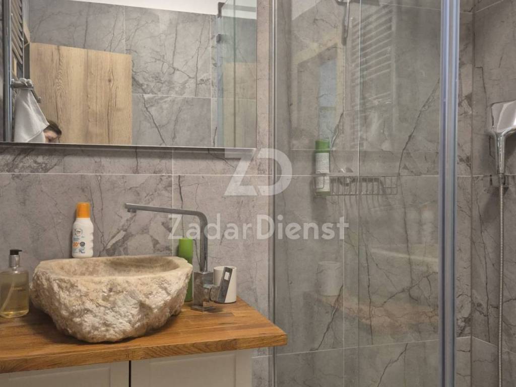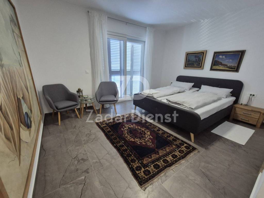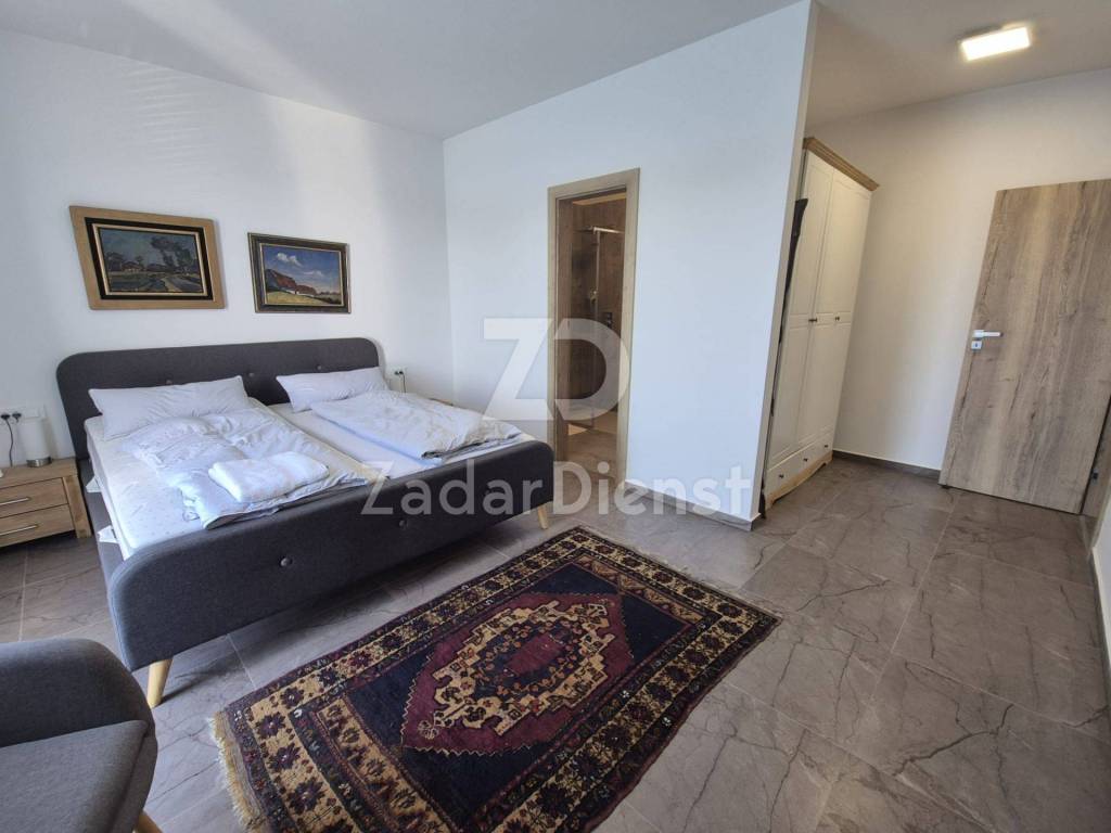 Dvije velike terase po 26 m2 i jedna manja terasa od 10 m2. Garaža je veličine 32,7 m2. Kuća je opremljena sa vrhunskim namještajem i uređajima.