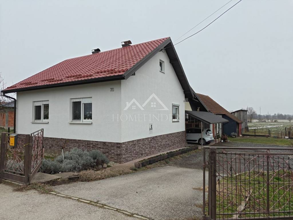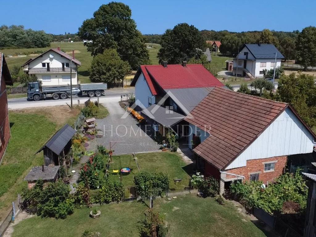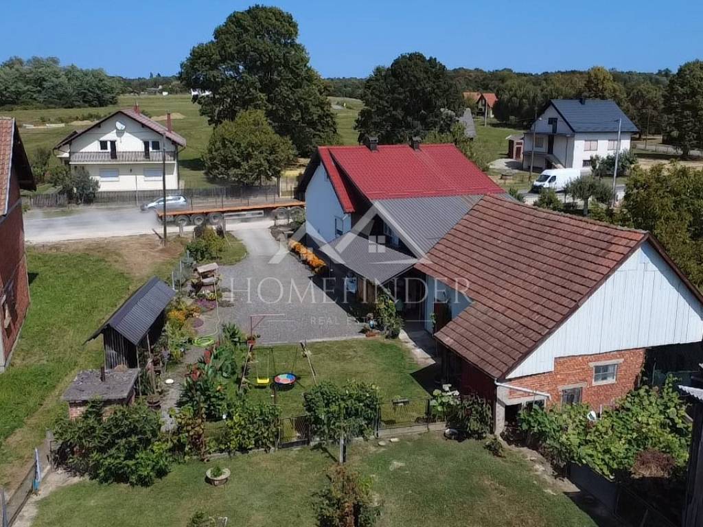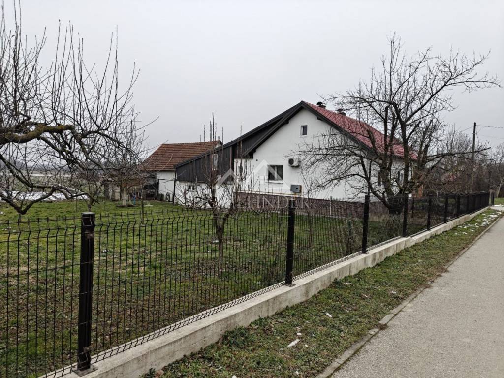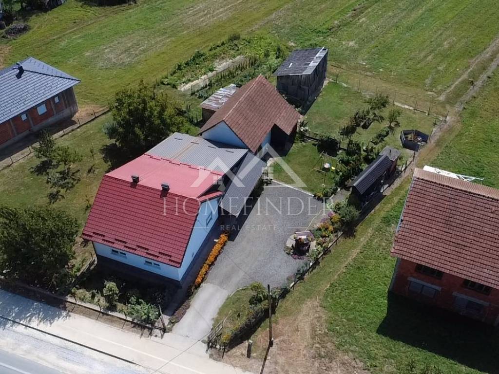 Opis nekretnine: Kuća površine 120 m² s podrumom Velika i uređena okućnica od 5.445 m² Uz kuću se nalaze pomoćne zgrade, garaža i ljetna kuhinja – savršeno za obiteljska druženja i uživanje u toplim danima Grijanje na drva i plin – mogućnost izbora prema želji i potrebi Kanalizacija u procesu izgradnje, što dodatno povećava vrijednost i komfor nekretnine Namještaj uključen u cijenu ili po dogovoru s kupcem