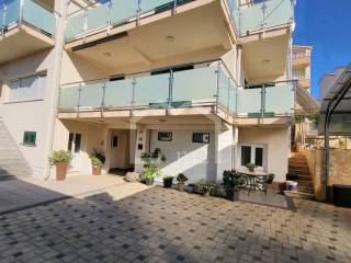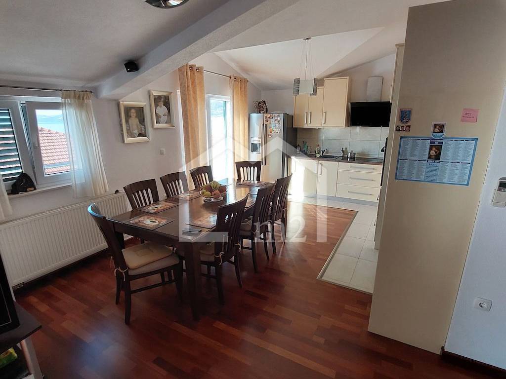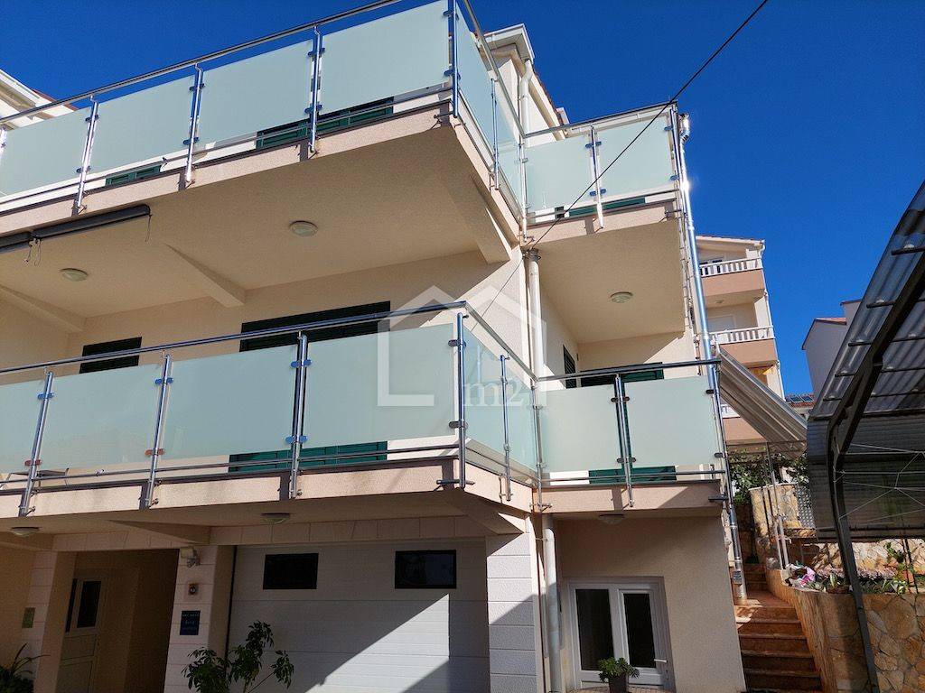 Posredujemo u prodaji kuće sa više apartmana u Okrugu Gornjem. Kuća se sastoji od 5 apartmana i svi su etažirani kao zasebne jedinice sa pripadajućim zjedničkim prostorima.Apartmani su potpuno optremljeni i u funkciji su turističke djelatnosti. KUća ima sve potrebne dodatne prostorije koje su neophodne ovakvom objektu. Opremljena je opremljena centralnim grijanjem koje se može isključivati/uključivati zasebno za svaki apartman. Postoji zasebniprostor praonice te prostorije sa kotlom za grijanje tople vode i potrebe centralnog grijanja. Svaki apartman ima zasebno mjerilo struje, vode i tople vode. Dva su velika trosobna apartmana od 105 m2, sa kuhinjom, dnevnim boravkom i blagovaonom, te kupaonom i balkonom. Ostala tri apartmana su manja, površine od oko 45 m2. Svaki se apartman sastoji od jedne spavaće sobe,kuhinje, blagovaone i dnevnog boravka kao jednog velikog prostora i balkona. Kućaje betonske gradnje sa izolacijom od 8 cm. Ima 5 parkirnih mjesta od kojih su dva natkrivena. Postoji i garaža sa rolo vratima. Kuća je u izvrsnom stanju, održavana i spremna za slijedeću turističku sezonu.
