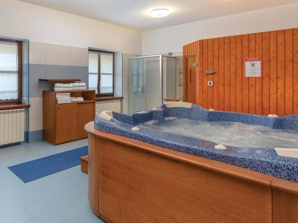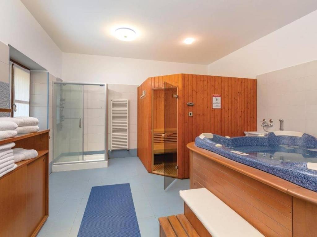 Sadržaj: Jacuzzi za 4 osobe, stolni nogomet, finska sauna, pokretna traka za trčanje, veliki bazen sa slatkom vodom, mini dječje igralište, trampolin.