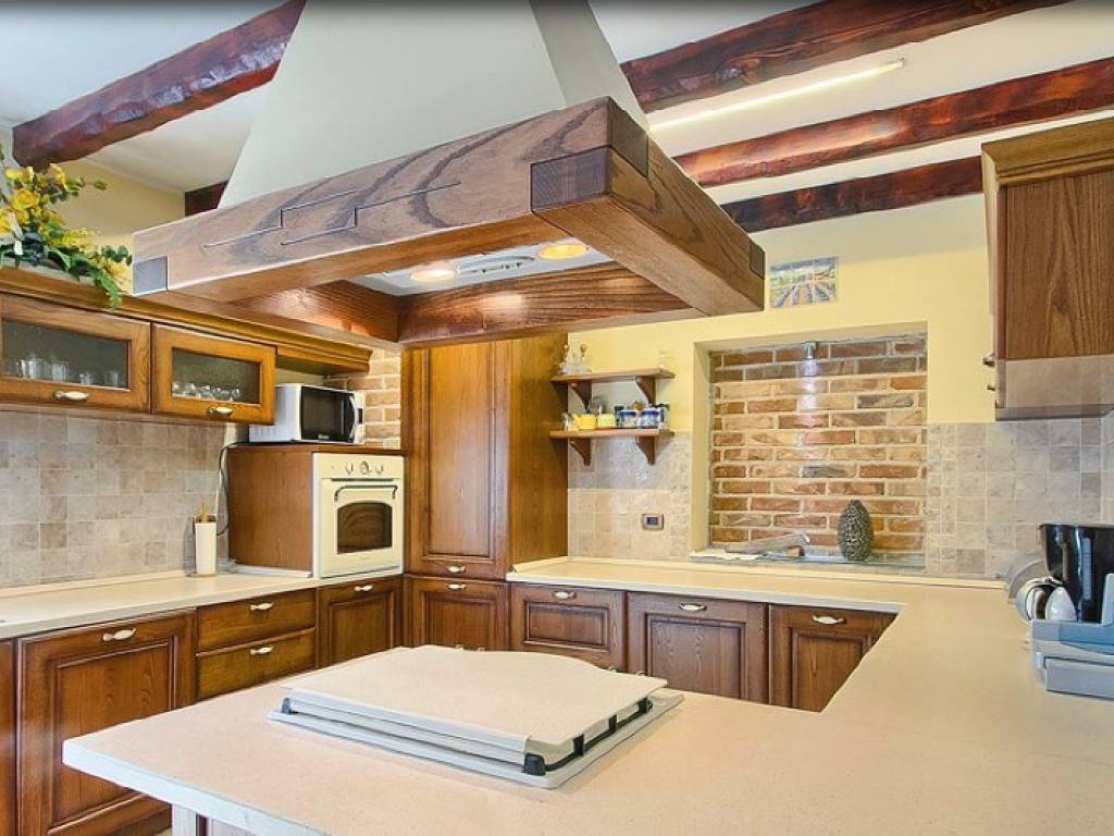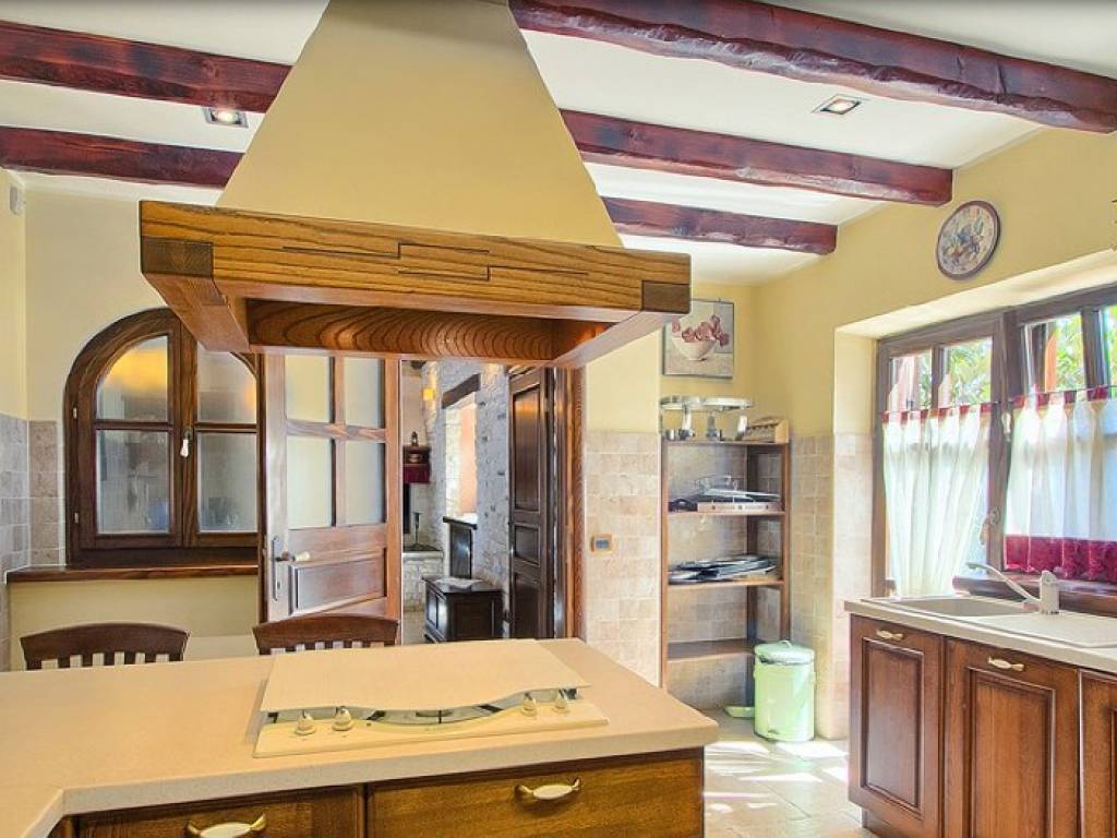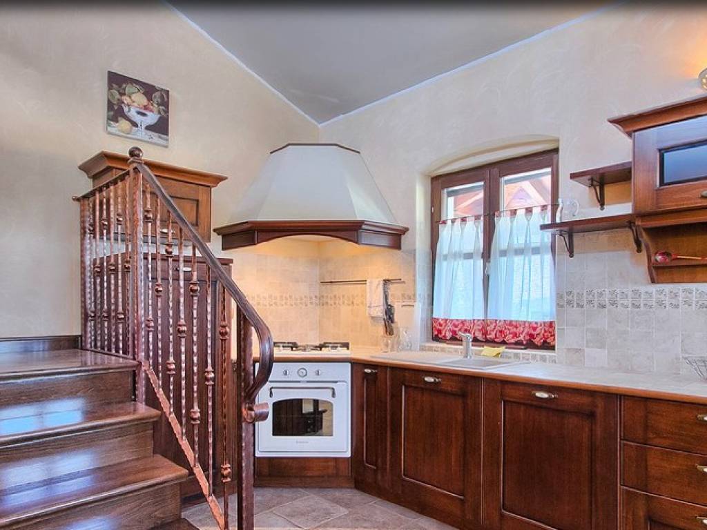 U prizemlju se nalazi veliki dnevni boravak s kaminom, wellness te prostrana kuhinja iz koje se izlazi na stražnju terasu i cvjetni vrt.