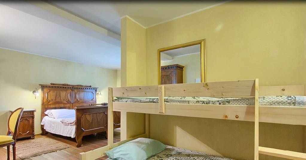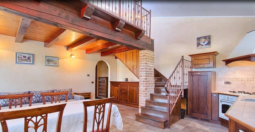 Bočni ulaz vodi nas u zasebni mini suit koji je opremljen kuhinjom, blagovaonom, spavaćom sobom, kupaonom i dječjim krevetićem. Stepenice vode na galeriju na kojoj je kauč koji se može koristiti za spavanje.