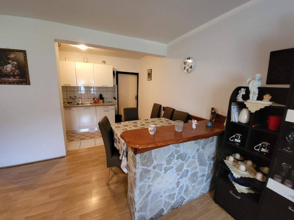 Kat - stubište, hodnik, dnevni boravak, kuhinja s blagovaonom, kupaonica, soba, balkon