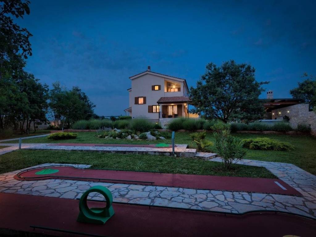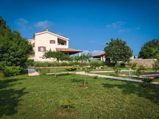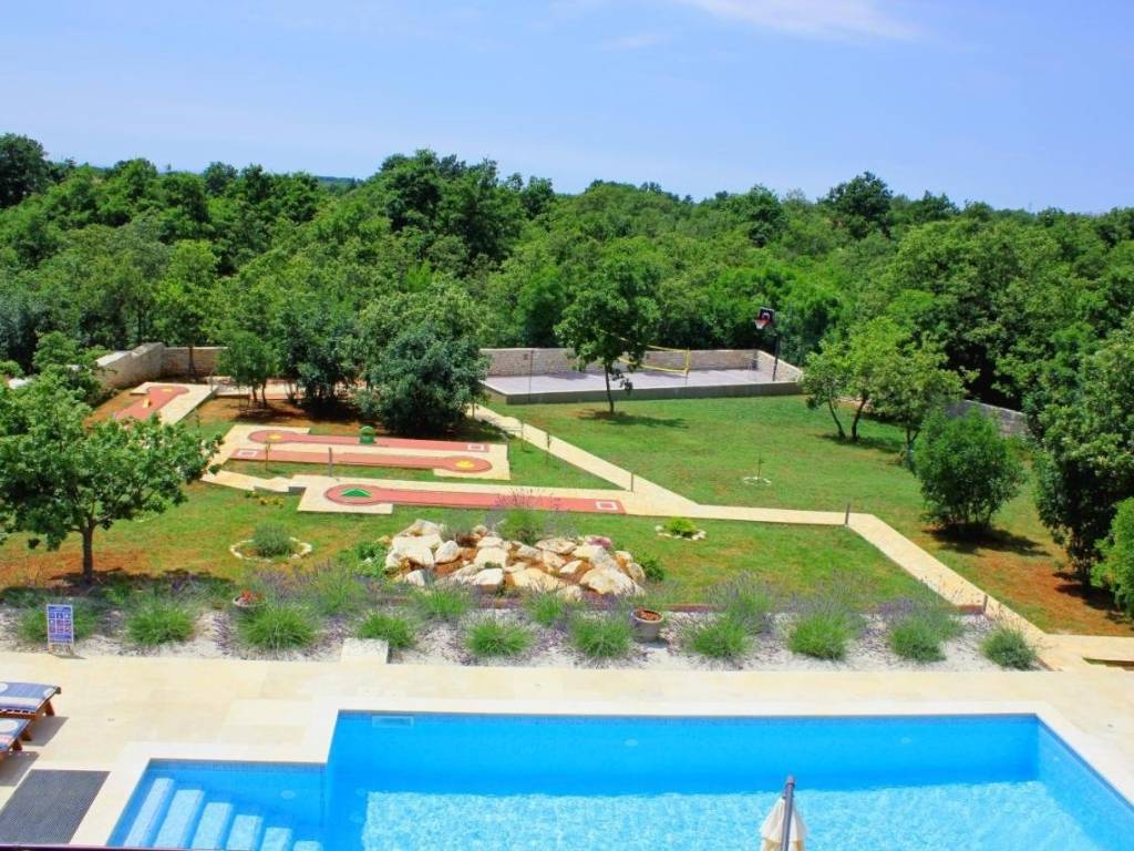 Okućnica je lijepo uređena i potpuno ograđena , te se tu nalazi i bazen površine 36 m2 sa sunčalištem, natkrivena terasa s roštiljem, multifunkcionalnim igralištem, mini golf terenom te dječijim igralištem.