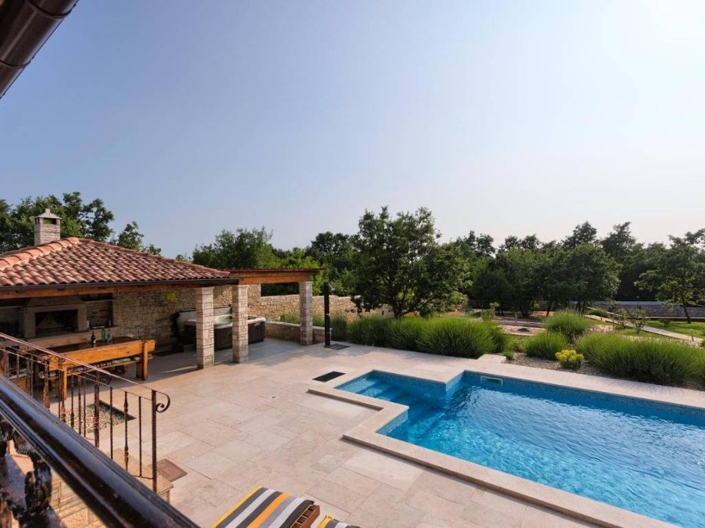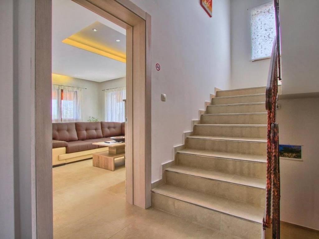 Stepenicama dolazimo na gornji kat gdje se nalaze 3 spavaće sobe, svaka sa svojom kupaonicom od kojih jedna ima izlaz na balkon s pogledom na okolno zelenilo i bazen. Svaka spavaća soba je klimatizirana.