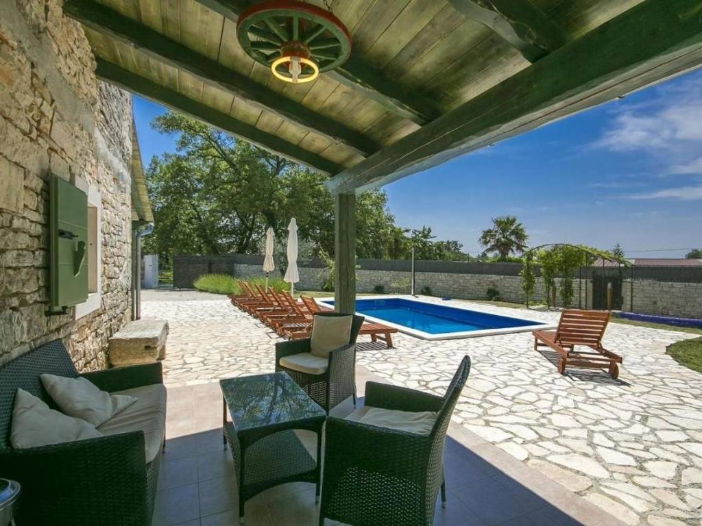 U ponudi je ovo predivno imanje u okolici Tinjana koje se sastoji od kamene kuće sa bazenom i starinom za adaptaciju. Kamena kuća je izgrađena 1965. godine, kompletno je renovirana u autentičnom istarskom stilu 2013. godine te pruža jedinstveni osjećaj boravka u staroj kamenoj kući. Na kompletno ograđenoj okućnici od 1200 m² na raspolaganju stoji otvoreni bazen od 25 m², natkrivena terasa sa sjedećom garniturom i stolom za objedovanje, te parking za 2 automobila.