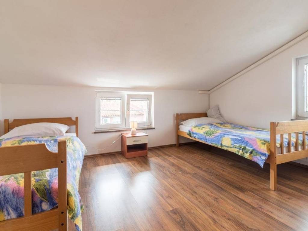 Prodaje se samostojeća kuća u Puli na Valdebeku, 320m2 površine. Smještena je na zemljištu od 500m2 u mirnoj ulici. Sastoji se od 4 stana, dva dvosobna u prizemlju i dva dvoetažna četverosobna stana sa po dva kupatila na katu. Stanovi u prizemlju imaju 49m2 i 56m2 površine, dok stanovi na katu imaju 102m2 i 112m2 površine. Kuća je kvalitetno građena i završena 2015. godine. Svi su stanovi klimatizirani i imaju centralno etažno plinsko grijanje. Pet parkirnih mjesta u dvorištu kuće. Odlična investicija za bavljenje turizmom.