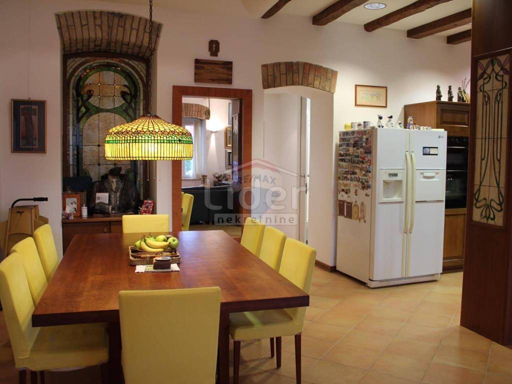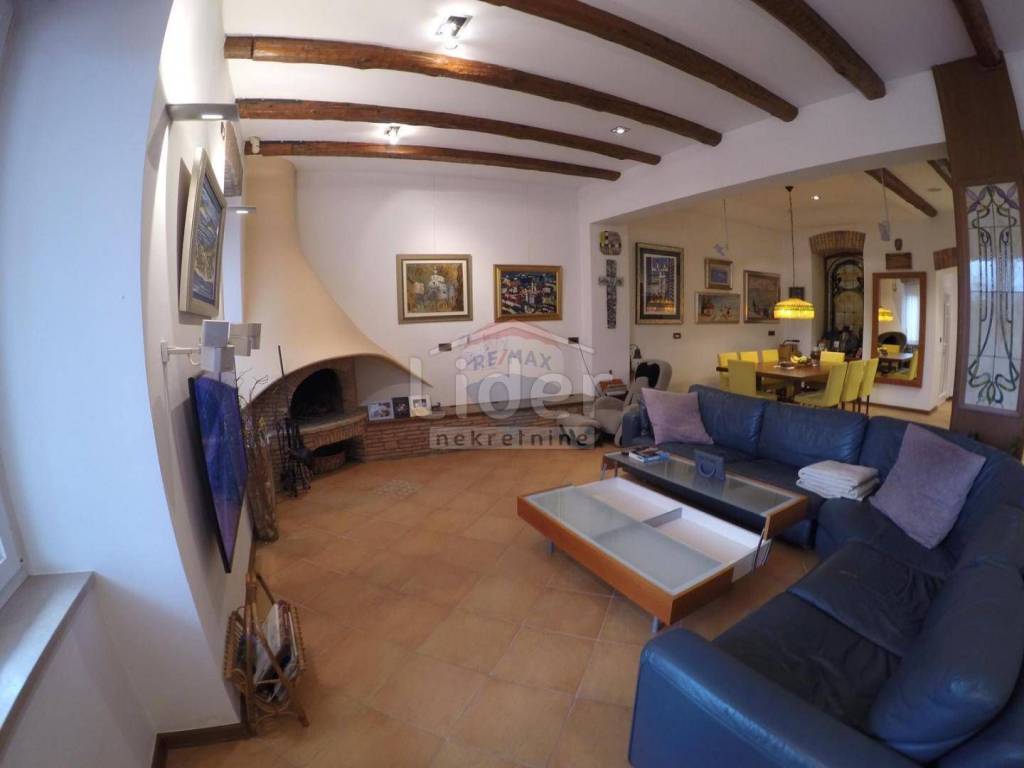 Na katu se nalaze 4 spavaće sobe, dvije garderobne sobe, dvije kupaone te skladišni prostor. Kroz cijelu kuću postavljeno je centralno grijanje na gradski plin. Kuća ima 3 klime. Kompletna vanjska stolarija je PVC. Na krovu se nalaze solarni paneli. U dvorištu se nalazi garaža od 25 kvadrata, Konoba sa sanitarnim čvorom od 45 kvadrata, natkrivena Sjenica sa mramornim stolom i drvenim klupama, vanjski kamin kotlovnica sa spremištem.
