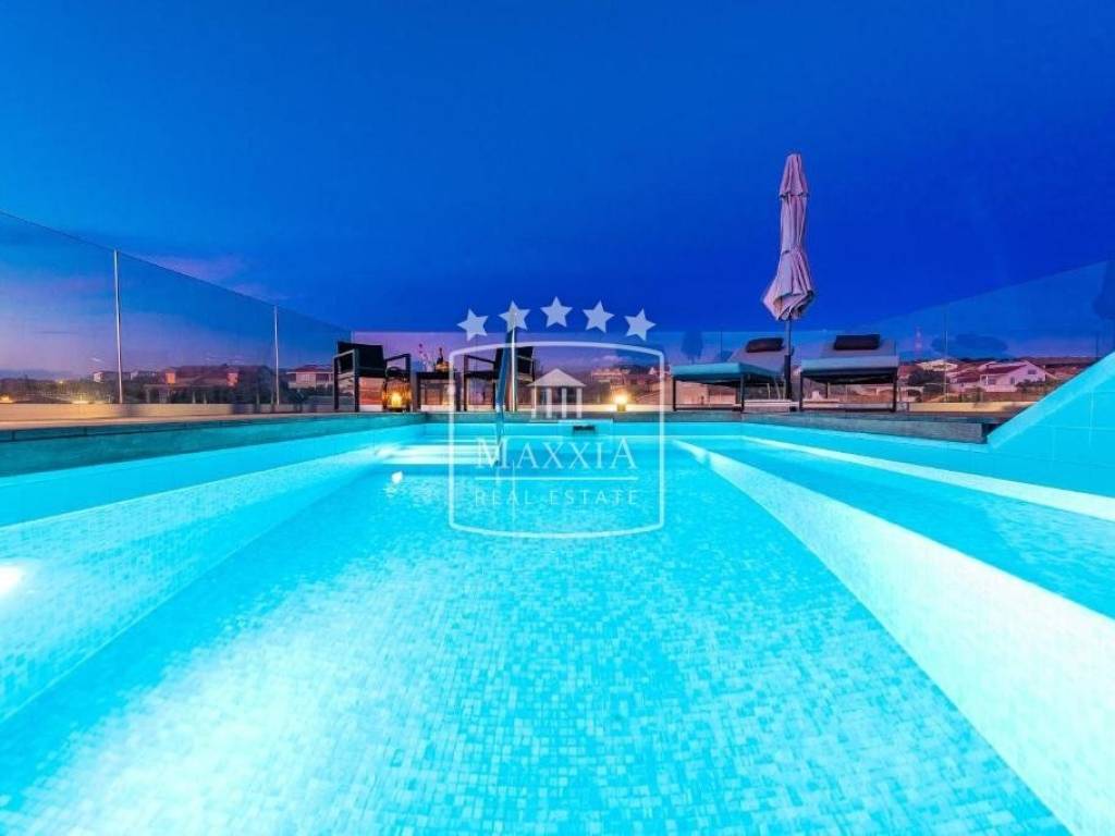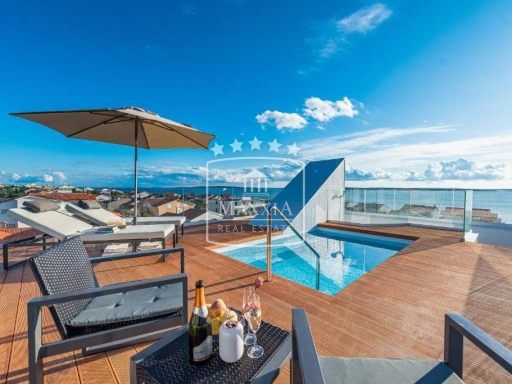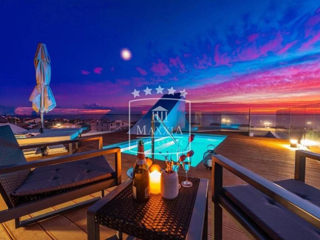 Krovna terasa površine cca 60 m2 s privatnim bazenom s kojeg se pruža