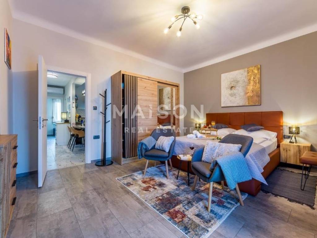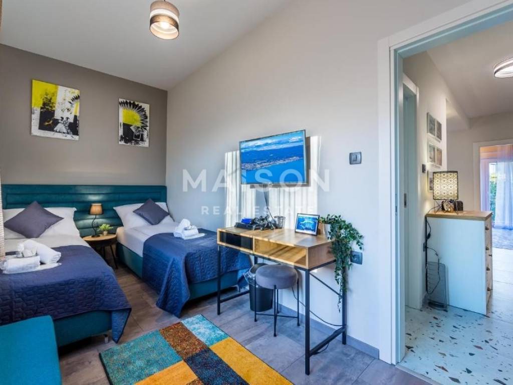 Iznajmljuje se moderno namješten apartman koji pruža jedinstven doživljaj luksuza i opuštanja, svega nekoliko minuta od užurbanog gradskog središta. Nalazi se samo 50 metara od plaže s Plavom zastavom – jamstvom čistoće mora, sigurnosti i ekološke svijesti.