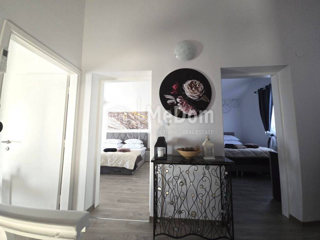 Prodajemo noviju kuću sa većom okućnicom u blizini Poreča. Do Poreča imate samo 5 minuta vožnje. Kuća je na okućnici površine od 1096m2 okružena sa novim kućama. Stambena površina kuće je 240m2. U prizemlju se nalaze veliki dnevni boravak sa blagovaonicom i kuhinjom, dvije spavaće sobe, kupaonica i spremište. Na prvi kat se ide unutrašnjim stepenicama. Na katu se nalaze tri spavaće sobe, kupaonica i velika terasa od 40m2. Terasa ima prekrasan pogled na okolinu i more. Grijanje i hlađenje je riješeno sa centralnim grijanjem i klima uređajima. Stolarija je PVC i aluminij. Kuća se prodaje namještena i odmah spremna za useljenje. Do sada se uspješno iznajmljivala turistima. U dvorištu kuće je nadzemni bazen, vrtni namještaj, posebno uređen roštilj i veći travnjak. Kuća je ograđena i pruža vlasniku potpunu intimu. Kući pripada i dodatni objekat za spremište i prostorija-kotlovnica. Na većem dvorištu postoji mogućnost izgradnje i ukopanog bazena. U blizini kuće su svi potrebni sadržaji za život. Porečke plaže, restorani, barovi i trgovački centri su na 5 minuta vožnje. Do autoceste samo 20 minuta vožnje. Prilika za sve one koji žele imati svoju uređenu kuću u najrazvijenijoj turističkoj destinaciji Istre.