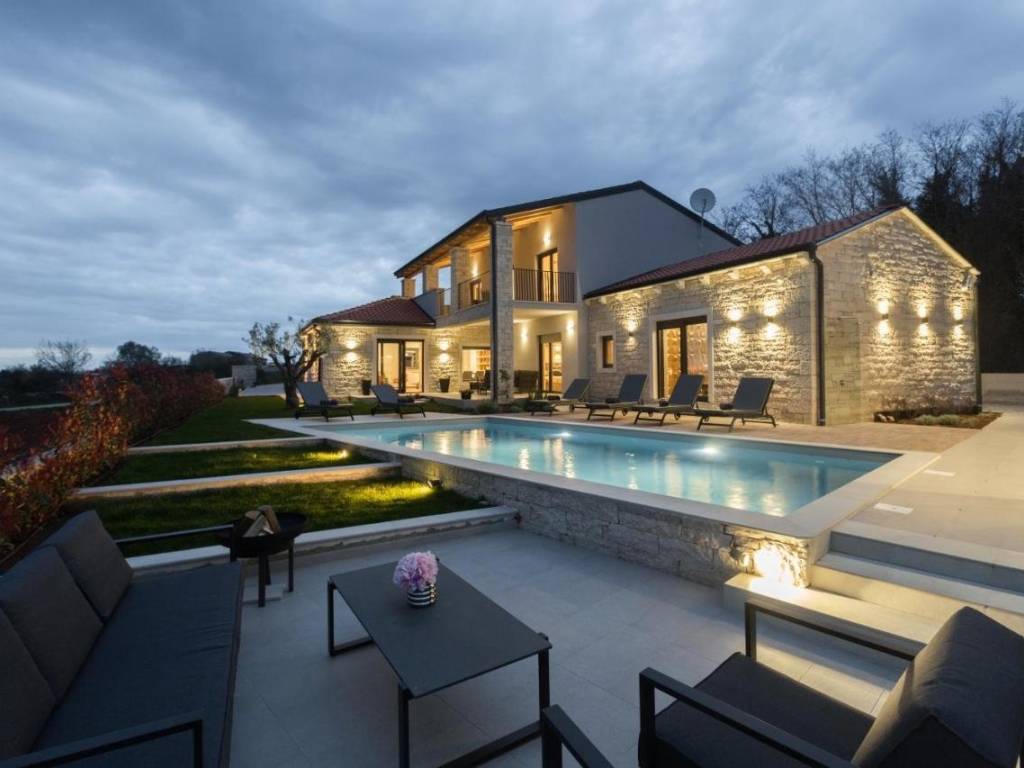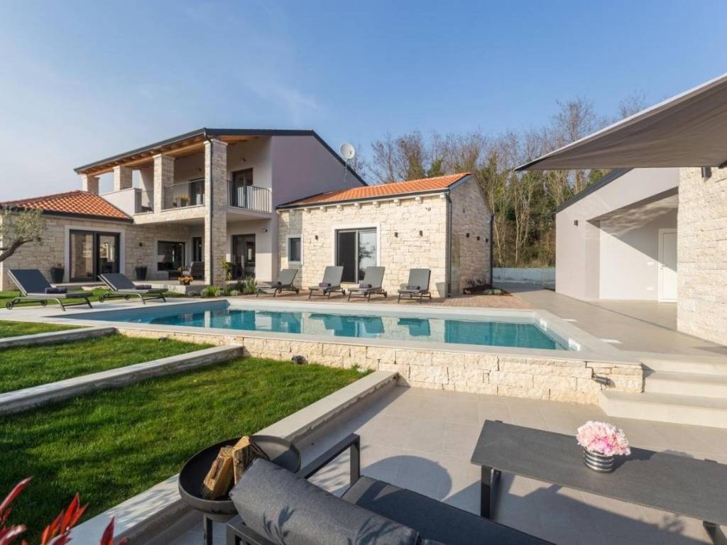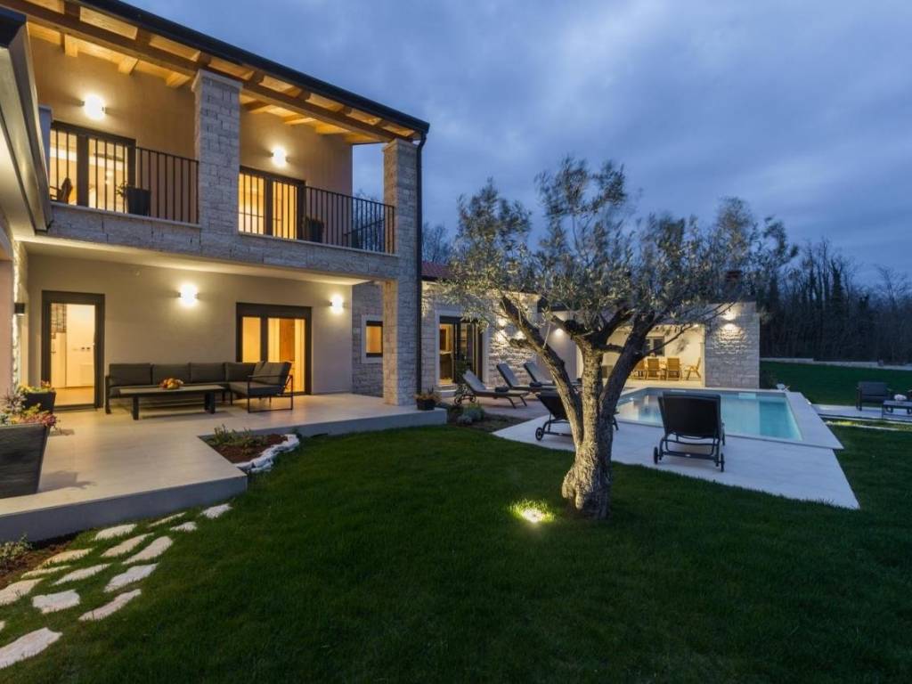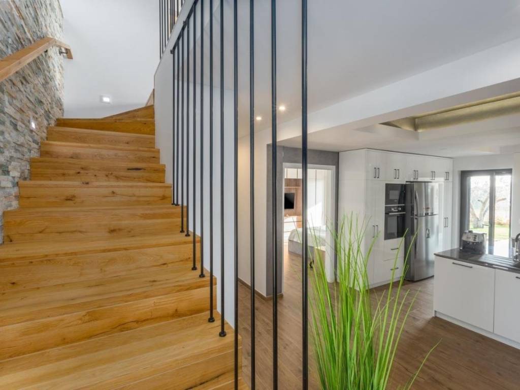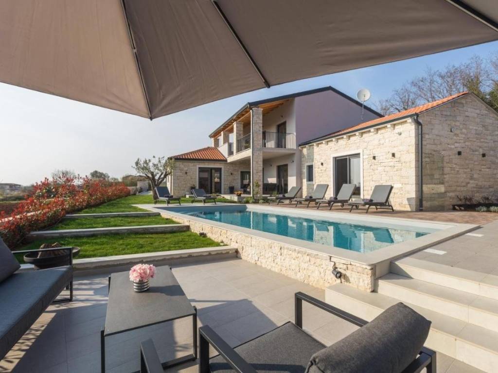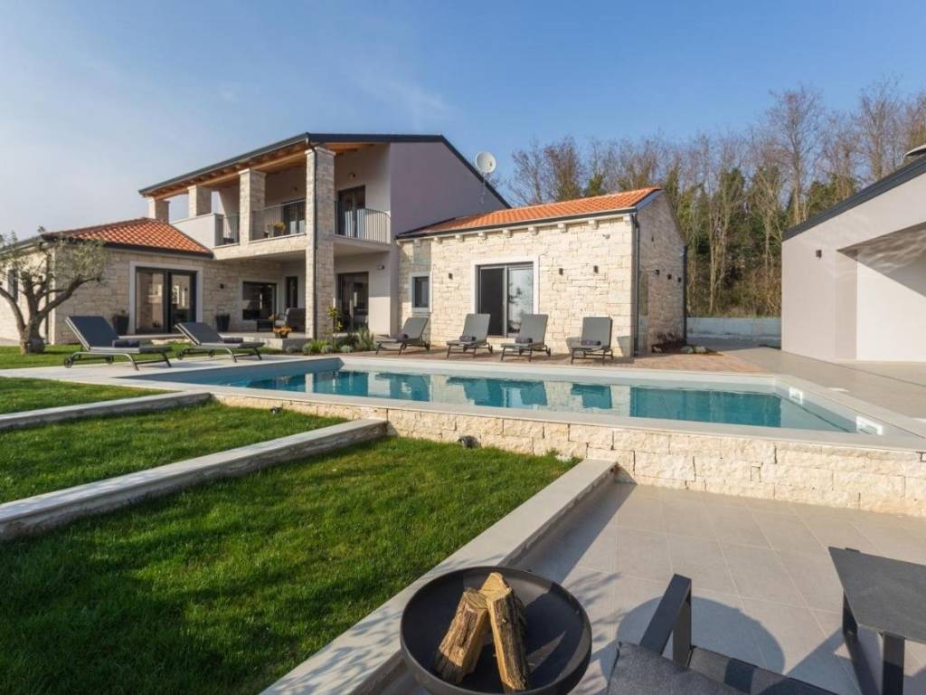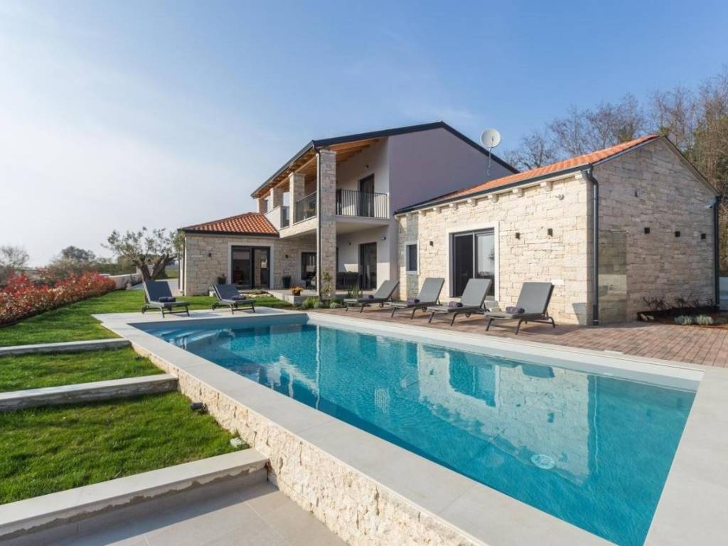 U ponudi imamo ovu predivnu villu od 300 m2 na okućnici površine 1874 m2. Proteže se kroz dvije etaže. Prizemlje nekretnine sastoji se od prostranog open space koncepta kuhinje sa blagovaonom i dnevnim boravkom i izlazom na prekrasnu terasu, spavaće sobe i njoj pripadajuće kupaonice, wellness zone, ostave, praonice te gostinjskog toaleta. Na katu se nalaze tri spavaće sobe, dvije kupaonice te prostrane terase sa predivnim pogledom na zelenilo koji seže sve do mora. Na prostranoj okućnici vile koja je opremljena auotmatskim navodnjavanjem te rasvijetom nalazi se sunčalište i grijani bazen sa slanom vodom površine 36m2, ljetna kuhinja površine 50 m2 i dječje igralište. Vila je opremljena podnim grijanjem te je u potpunosti klimatizirana. Prodaje se kompletno namještena sa već uhodanim poslom iznajmljivanja. Nalazi se na mirnoj lokaciji , okružena zelenilom , te pruža privatnost i mir.