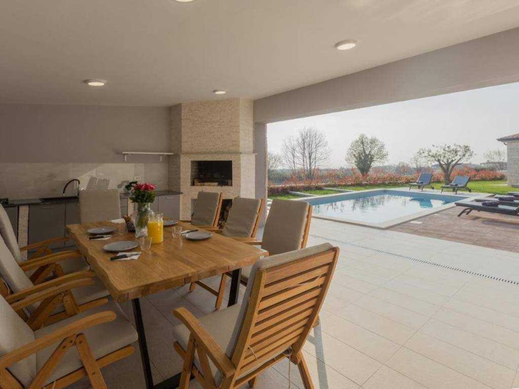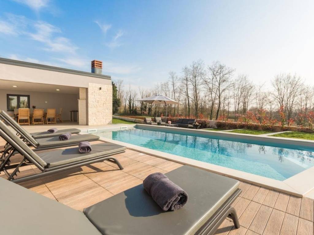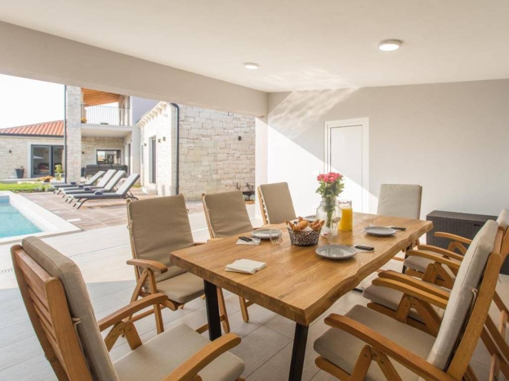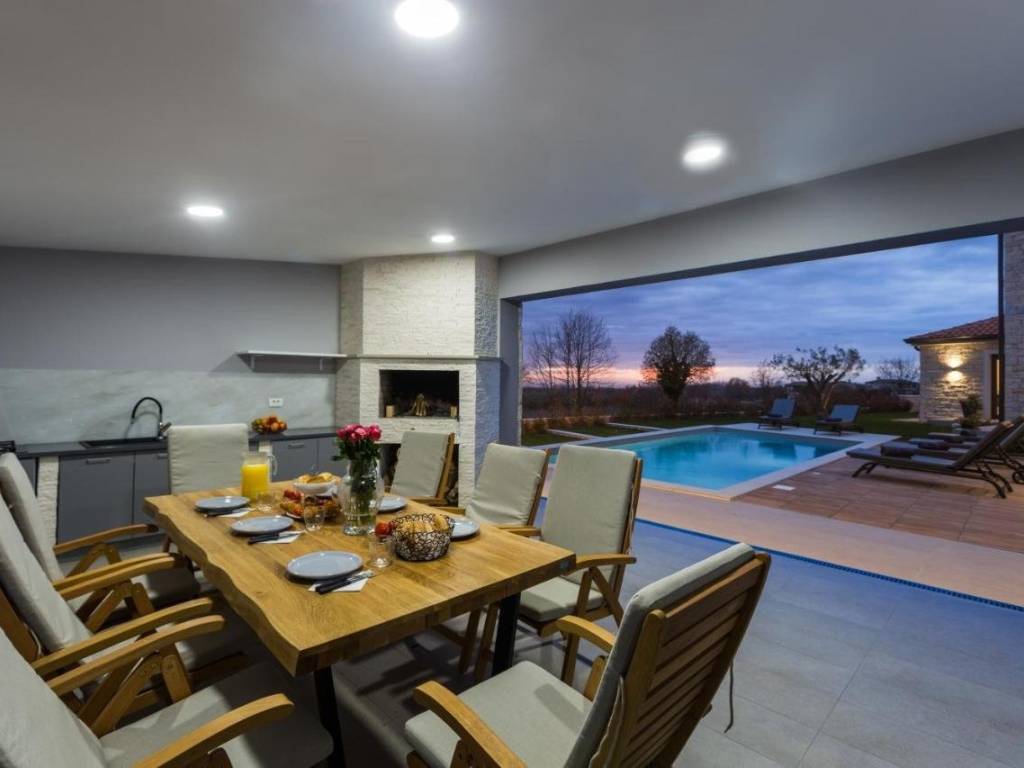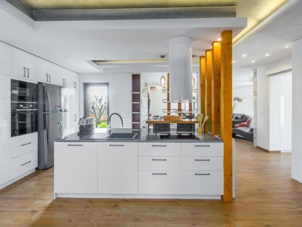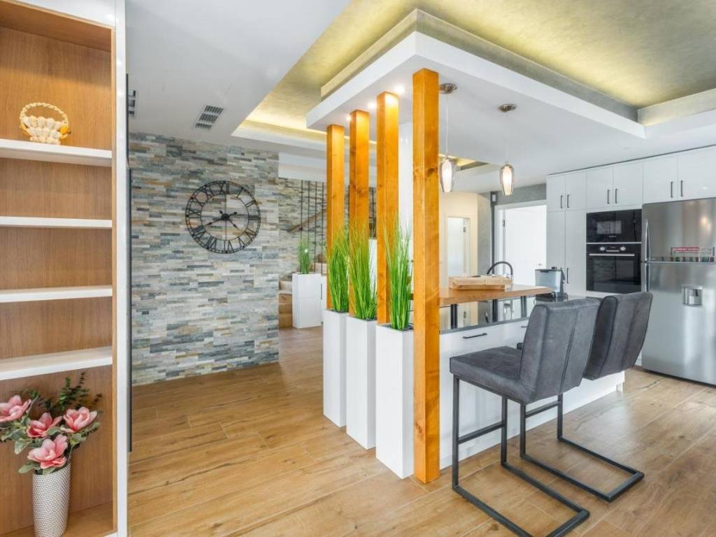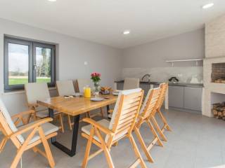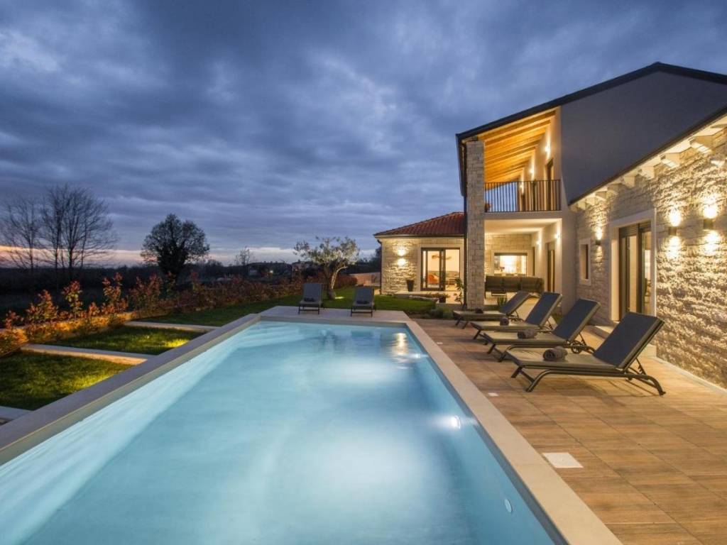 U ponudi imamo ovu predivnu villu od 300 m2 na okućnici površine 1874 m2. Proteže se kroz dvije etaže. Prizemlje nekretnine sastoji se od prostranog open space koncepta kuhinje sa blagovaonom i dnevnim boravkom i izlazom na prekrasnu terasu, spavaće sobe i njoj pripadajuće kupaonice, wellness zone, ostave, praonice te gostinjskog toaleta. Na katu se nalaze tri spavaće sobe, dvije kupaonice te prostrane terase sa predivnim pogledom na zelenilo koji seže sve do mora. Na prostranoj okućnici vile koja je opremljena auotmatskim navodnjavanjem te rasvijetom nalazi se sunčalište i grijani bazen sa slanom vodom površine 36m2, ljetna kuhinja površine 50 m2 i dječje igralište. Vila je opremljena podnim grijanjem te je u potpunosti klimatizirana. Prodaje se kompletno namještena sa već uhodanim poslom iznajmljivanja. Nalazi se na mirnoj lokaciji , okružena zelenilom , te pruža privatnost i mir.