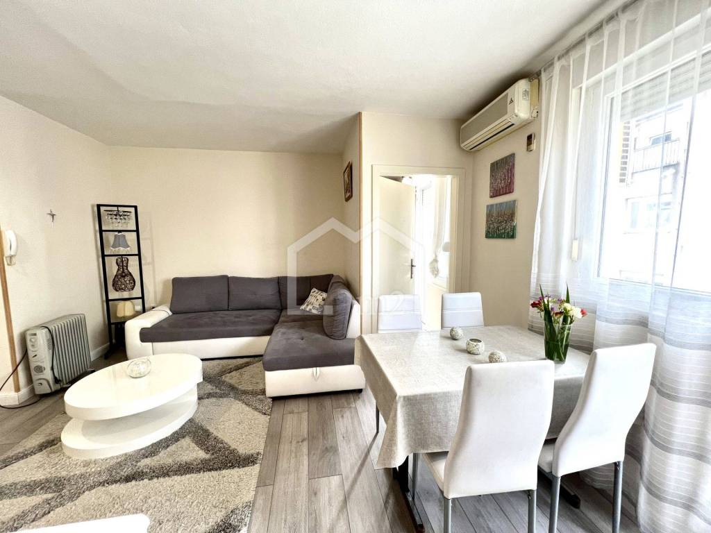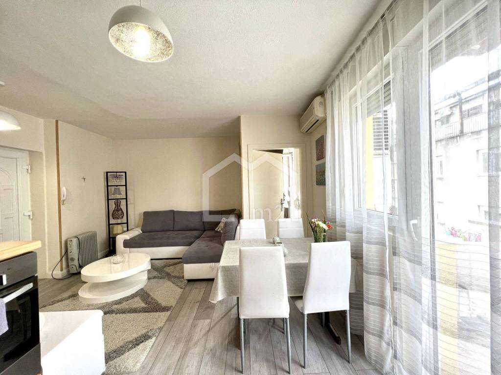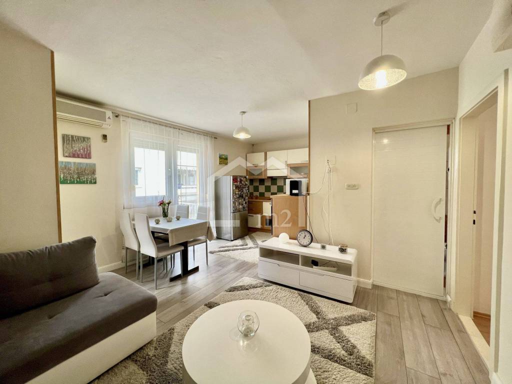 Posredujemo u najmu komfornog dvosobnog stana, koji se nalazi na odličnoj lokaciji u blizini centra grada. Smješten je na trećem katu stambene zgrade. Sastoji se od ulaznog dijela, dnevnog boravka sa kuhinjom i blagavaonom, dvije spavaće sobe, kupaone te dvije terase. Stan je potpuno namješten a posjeduje i klima uređaj, perilicu suđa, perilicu i sušilicu rublja te radijatore za grijanje u svim sobama. Osvijetljen i prozračan orijentiran sjevero-zapad. Idealna lokacija u blizini svih sadržaja potrebnih za ugodan gradski život. Kućni ljubimci nisu dozvoljeni.