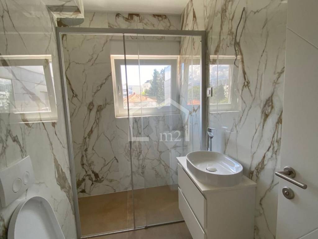 Iznajmljuje se dvosoban stan na duži period u novogradnji u Tršćanskoj ulici u Splitu. Sunčan i prozračan, u mirnoj ulici u blizini centra i svih sadržaja potrebnih za ugodan život. Smješten je na petom katu stambene zgrade s liftom, orijentacije jug/sjever, a sastoji se od dvije sobe, kuhinje s blagavaonicom, kupaonice,wc-a, hodnika i lođe,a s pripadajućom drvarnica u prizemlju zgrade. Stan nije namješten osim kuhinje. Idealan je kao poslovni prostor odnosno ured. Stanu pripada vanjsko parking mjesto.