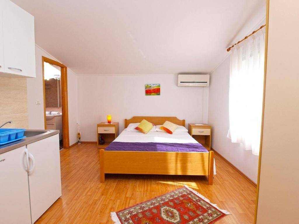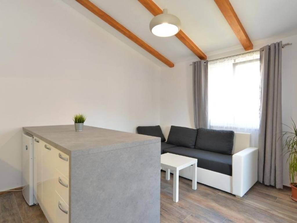 je odvojen od ostatka kuće, a sastoji se od spavaće sobe, kupaone, kuhinje, dnevnog boravka i terase.Na 1. katu nalazi se garsonijera, te