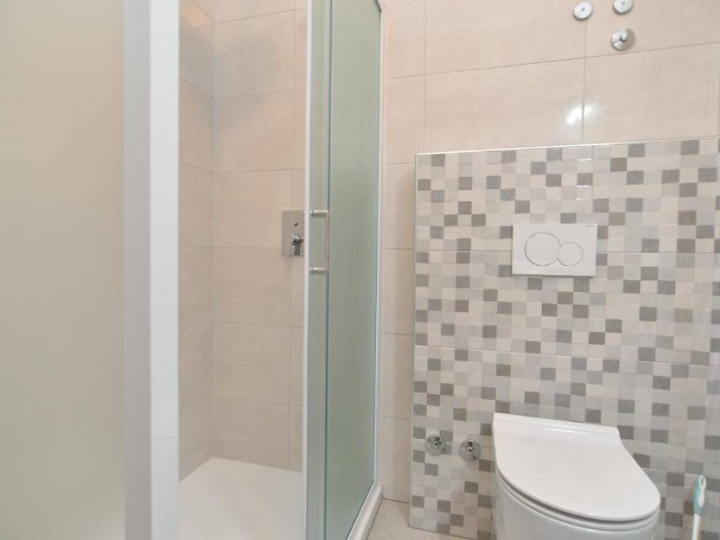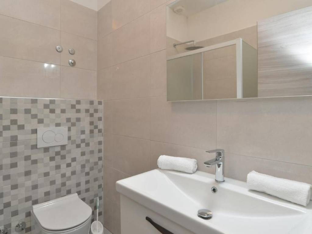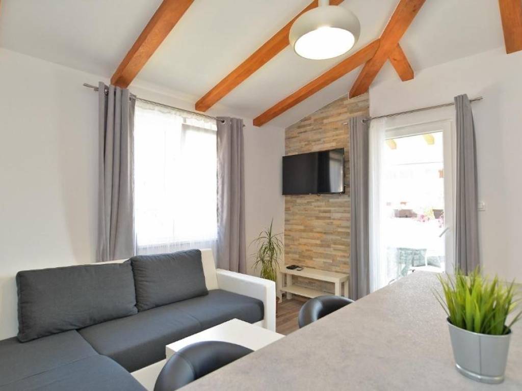 2 kupaonice, kuhinje s blagovaonom i dnevnim boravkom, te terase. U prizemlju se također nalazi još jedan stan, sa zasebnim ulazom koji