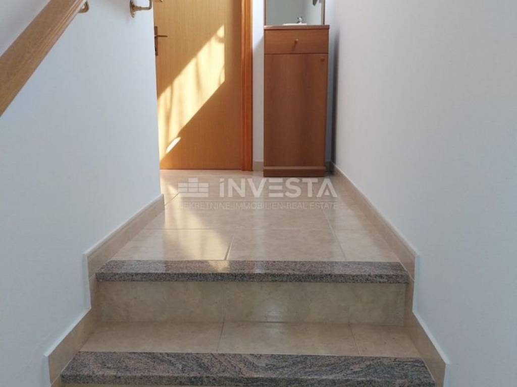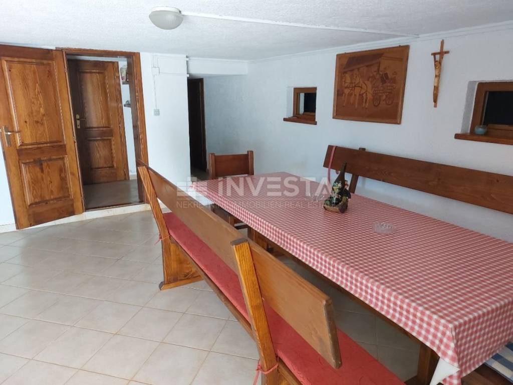 U podrumu se nalazi prostrana taverna za druženja, dvije ostave te velika prostorija koja služi kao vešeraj. U prizemlju se nalazi ulazni hodnik, kupaonica, blagavaonica s kuhinjom, natkrivena terasa te dnevni boravak s kaminom. Unutarnjim stepeništem dolazimo na prvi kat gdje se nalaze dvije prostrane spavaće sobe te kupaonica.