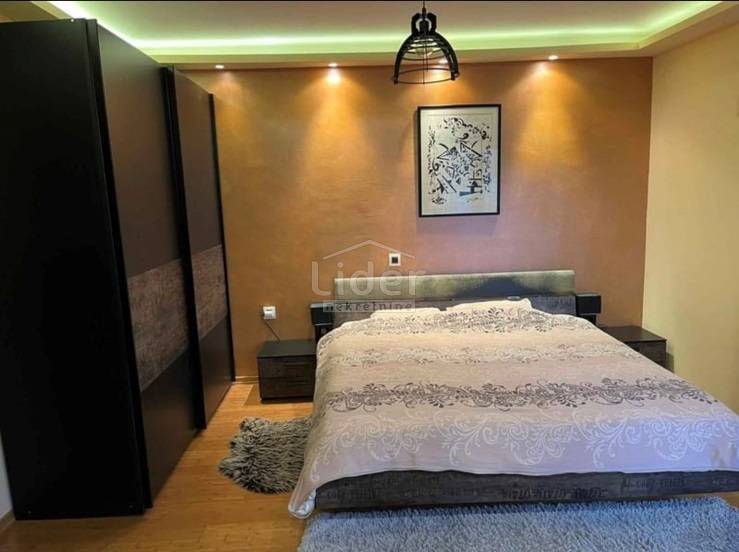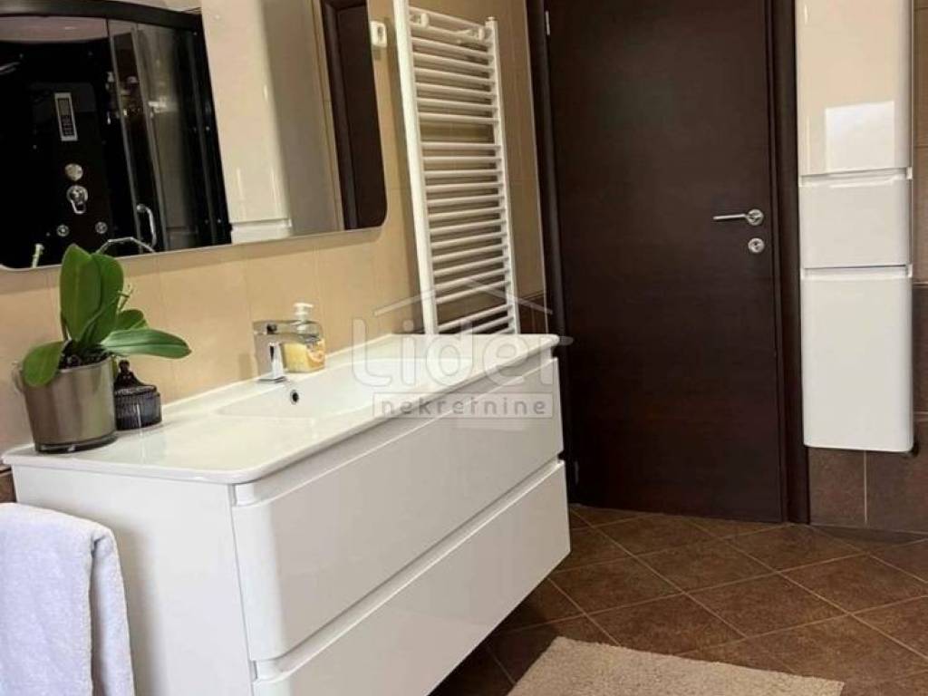 U prizemlju se nalazi veliki dnevni boravak, kuhinja i blagovaona, velika bračna soba, kupatilo sa hidro-masažnom kadom i tušem i 2 balkona.