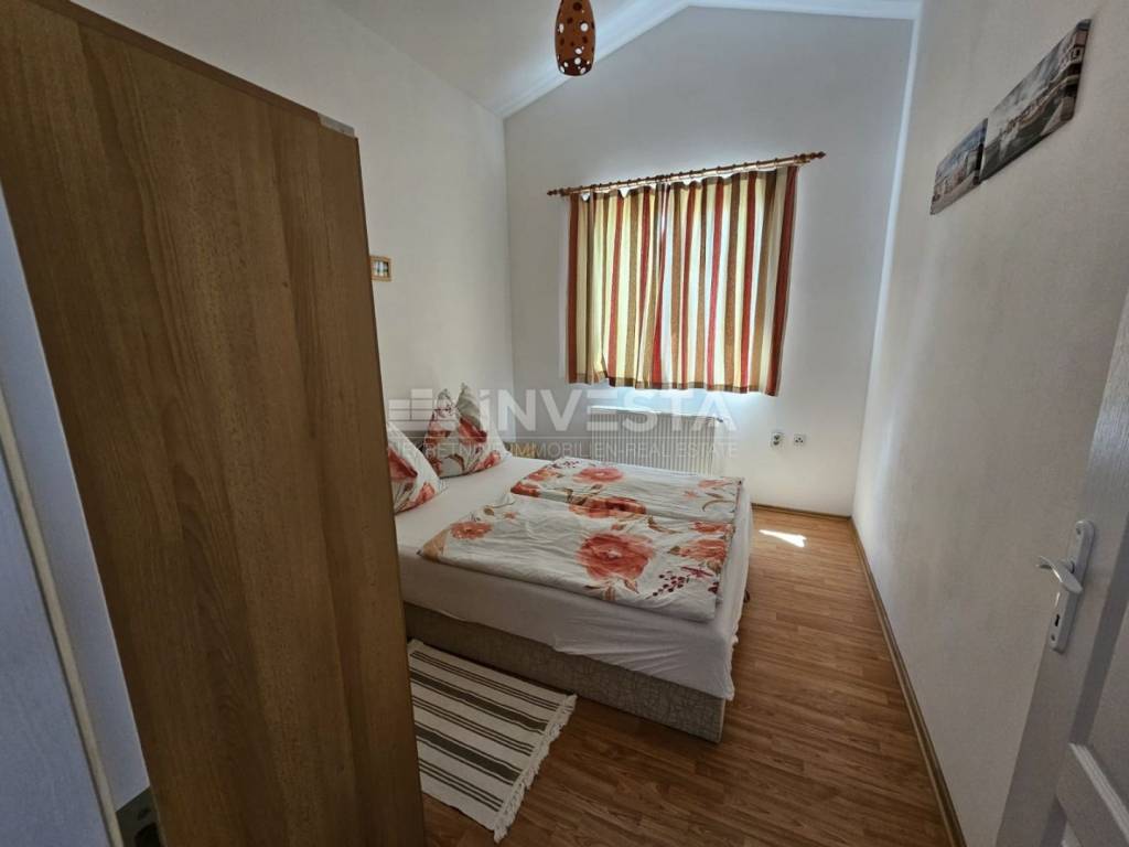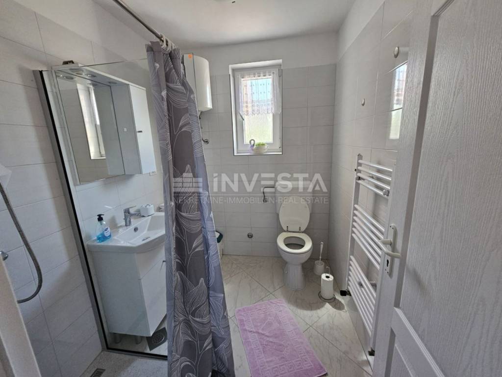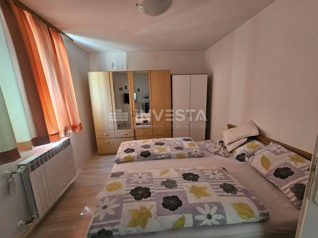 Konstrukcija i oprema: Kuća je građena od kvalitetnih materijala, s nosivim zidovima od blok-termo opeke debljine 25 cm i temeljnim konstrukcijama od armirano-betonskih zidova. Fasada je dodatno izolirana termoizolacijskom žbukom debljine 4 cm. Kuća je priključena na gradsku infrastrukturu (struja, voda, kanalizacija), a grijanje i hlađenje omogućeno je putem klima uređaja i centralnog etažnog grijanja na drva, što osigurava ugodnu temperaturu tijekom cijele godine.