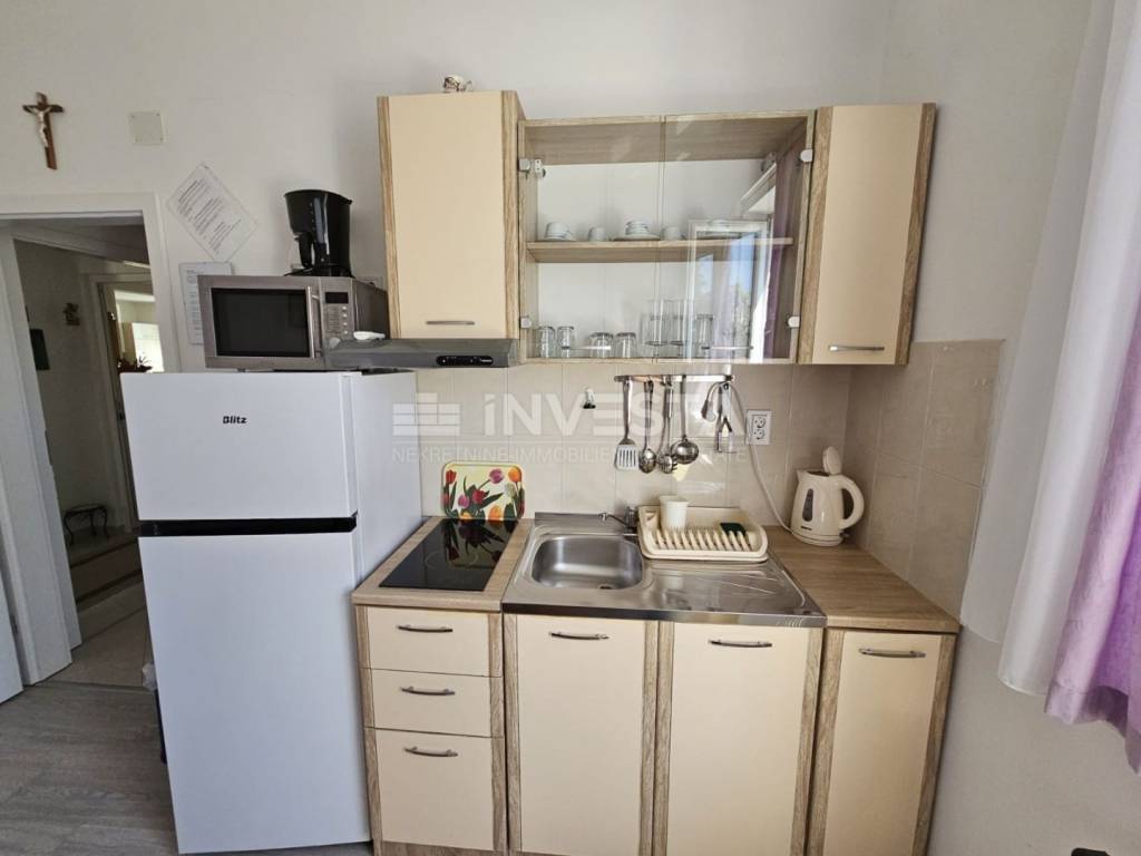 Stan 2 (prizemlje): Manji stan površine 26,72 m², koji uključuje predprostor, kupaonicu, kuhinju s blagovaonicom i odvojenu spavaću sobu.