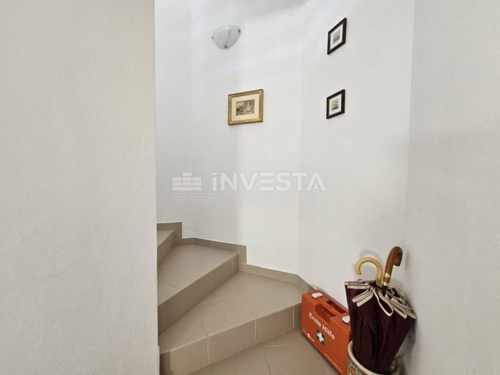 Opis kuće: Kuća je izgrađena prije otprilike 15 godina, prema arhitektonskom projektu, s urednom građevinskom i uporabnom dozvolom. Ukupna bruto površina kuće iznosi 207 m², dok dvorište od oko 200 m² uključuje vrt i prostrane terase za ljetne užitke. Kuća se sastoji od prizemlja, kata i manjeg podruma koji služi kao konoba.