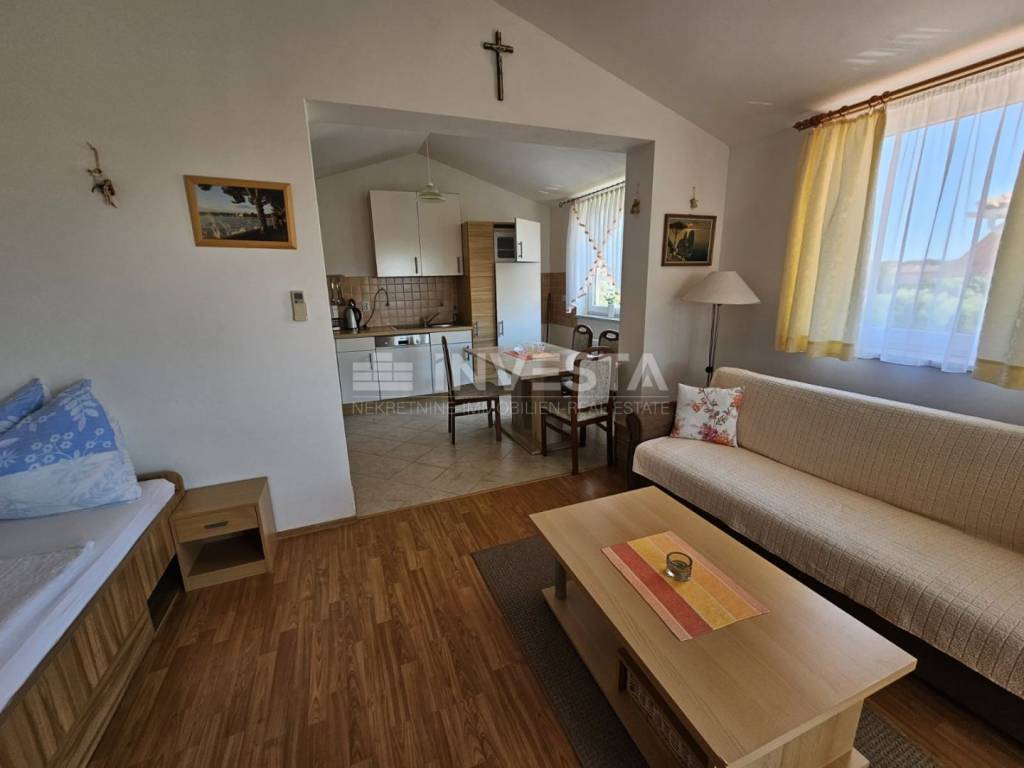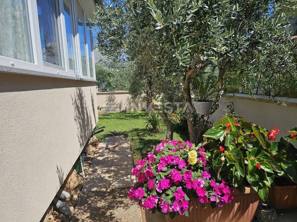 Vanjski prostori uključuju vrt s terasom i roštiljem, idealne za opuštanje na otvorenom.